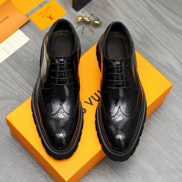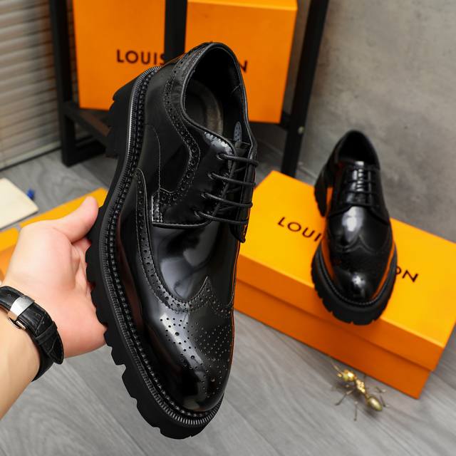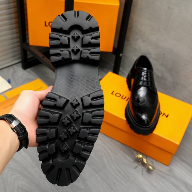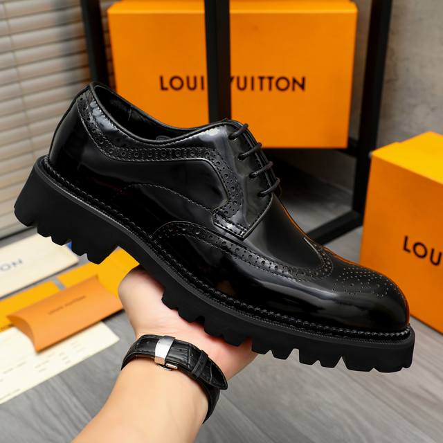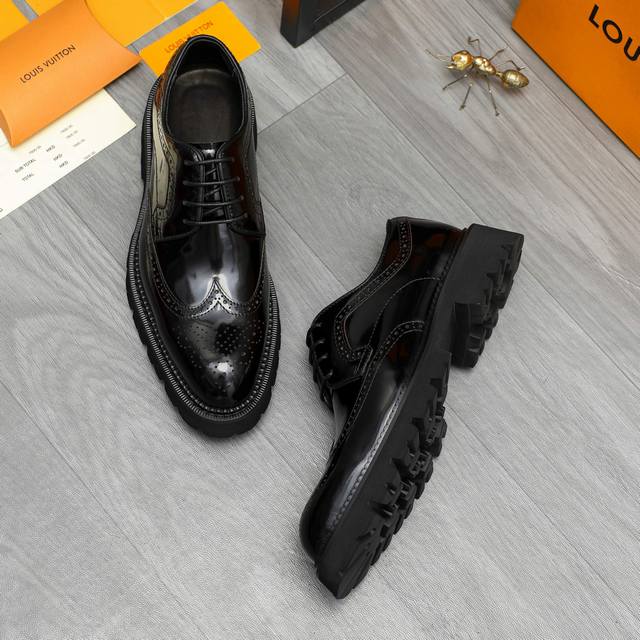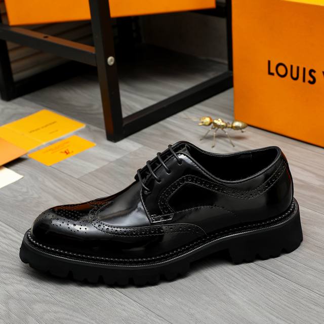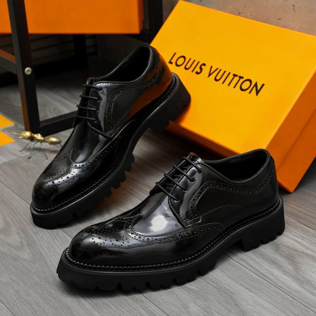 调工厂P价 男装男鞋 运动原单 商品商标:Lv 路易威登 商务正装系带皮鞋 正码码数: 37-46 商品材料:精选优质珠光雕花牛皮鞋面 猪皮内里 橡胶大底
