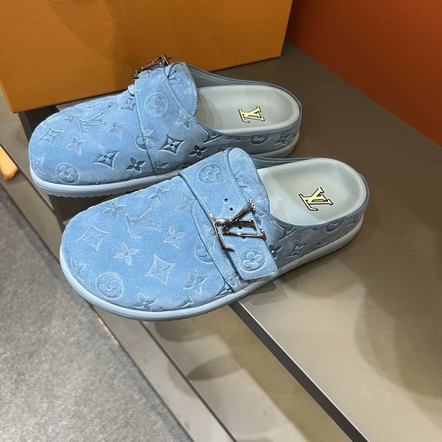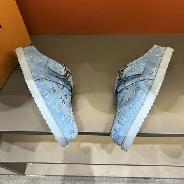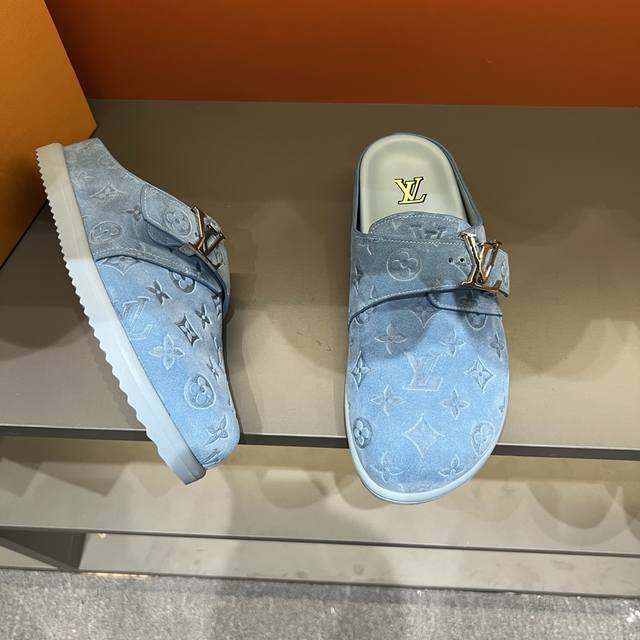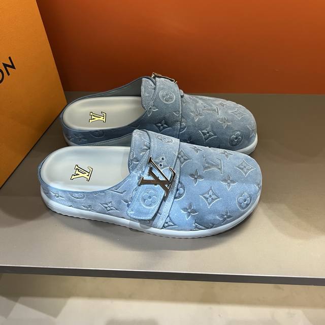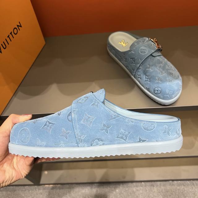/ 调工厂p价 男装男鞋 运动原单 38-45 Lv Easy 2025新款男士休闲凉拖拖鞋,取材绒面牛皮革,以Monogram 图案彰显潮流风范。Lv 字母点亮可