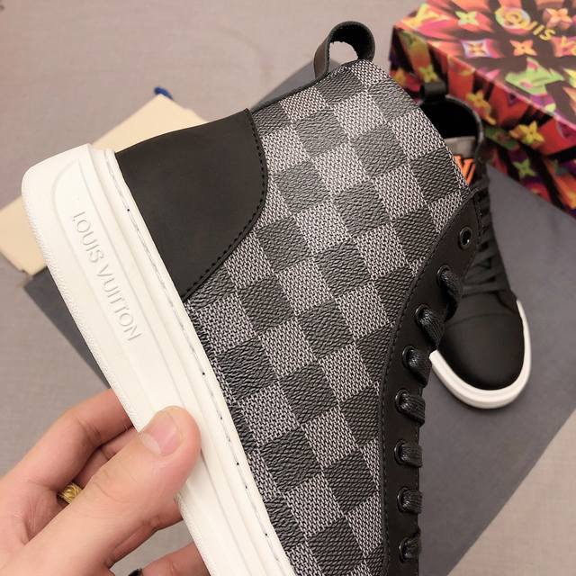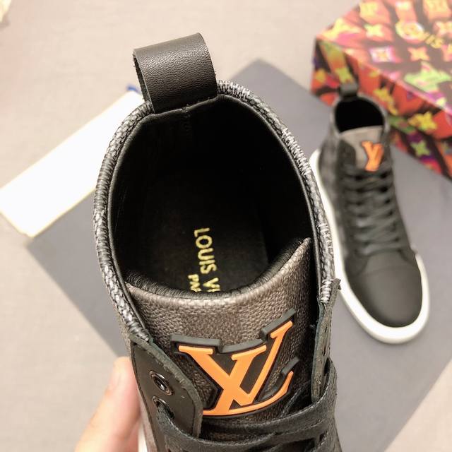 工厂p价p: Lv2025走秀 米兰男款 最新出货 Lvtrainer 高帮运动鞋 独家定制版 代购工艺 此款 L高帮运动鞋呈现出源自经典模型的创新...
