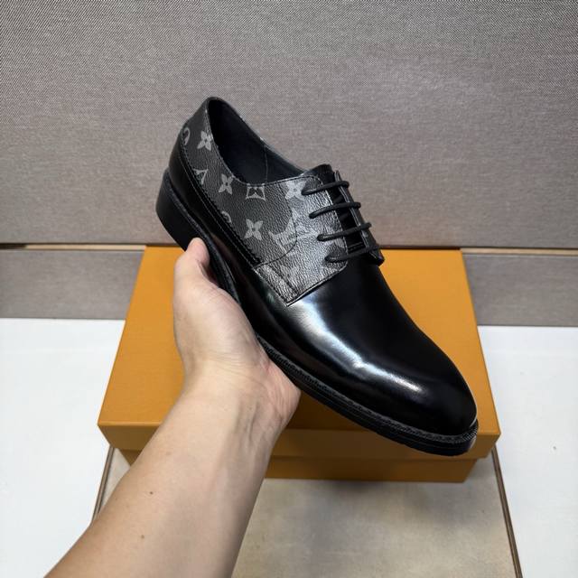 / 调工厂P价 男装男鞋 运动原单 Lv~ 男士休闲正装皮鞋 2025Z柜同步发售 码数:38-44 # 2个颜色鞋面选用牛皮拼接牛皮内里,舒适透气,鞋底:原版舒适