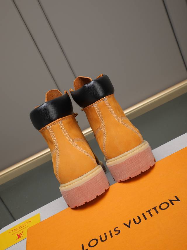 调工厂p价p调工厂p价 Louis Vuitton Ss25 Lv新款厚底系带大头鞋男士休闲鞋高帮小短靴。本款 靴子以头层小牛皮革裁出轻盈舒适鞋身。厚实 Eva