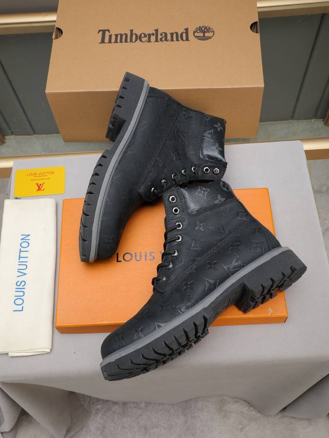 调工厂p价p调工厂p价 Louis Vuitton Ss25 Lv新款厚底系带大头鞋男士休闲鞋高帮小短靴。本款 靴子以头层小牛皮革裁出轻盈舒适鞋身。厚实 Eva