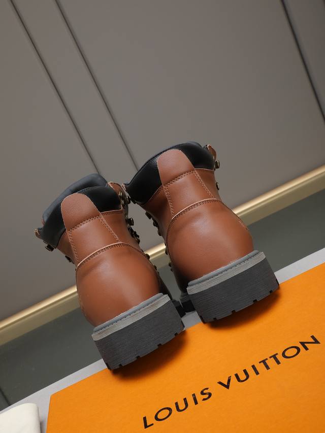 / 调工厂p价p调工厂p价 Louis Vuitton Ss25 Lv新款厚底系带大头鞋男士休闲鞋高帮小短靴。本款 靴子以头层小牛皮革裁出轻盈舒适鞋身。厚实 Eva