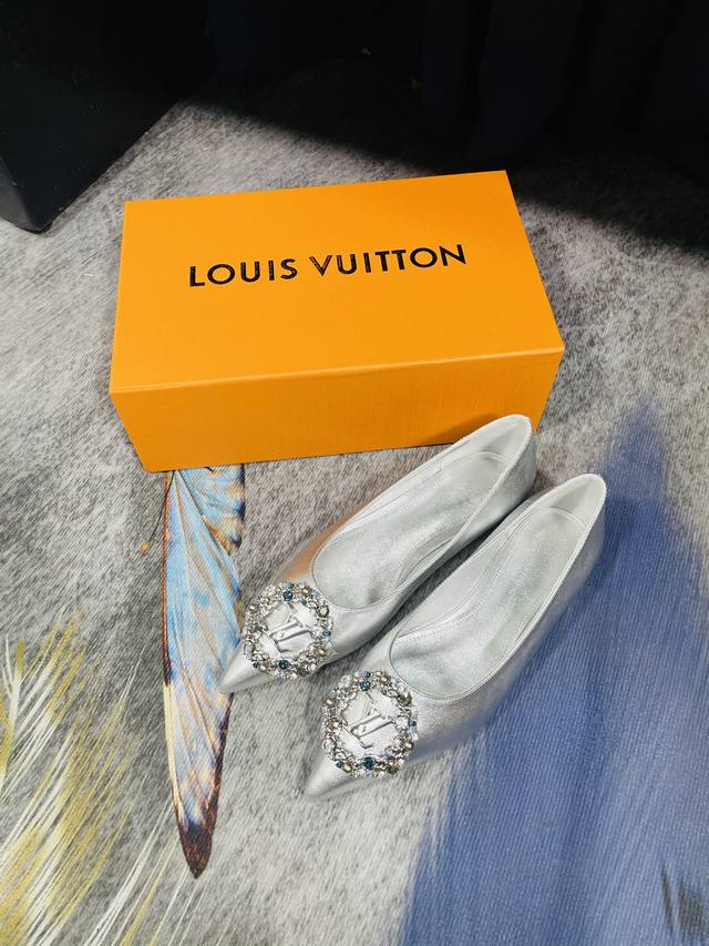 跟高1Cm 。驴家新品专柜同歩。女神必备单品,高品质货 原版开模钻石扣,进口钻,烤漆原版扣,每颗都是那么闪 。面料:牛皮 真丝,垫脚内里:进口羊皮。大底:意大利