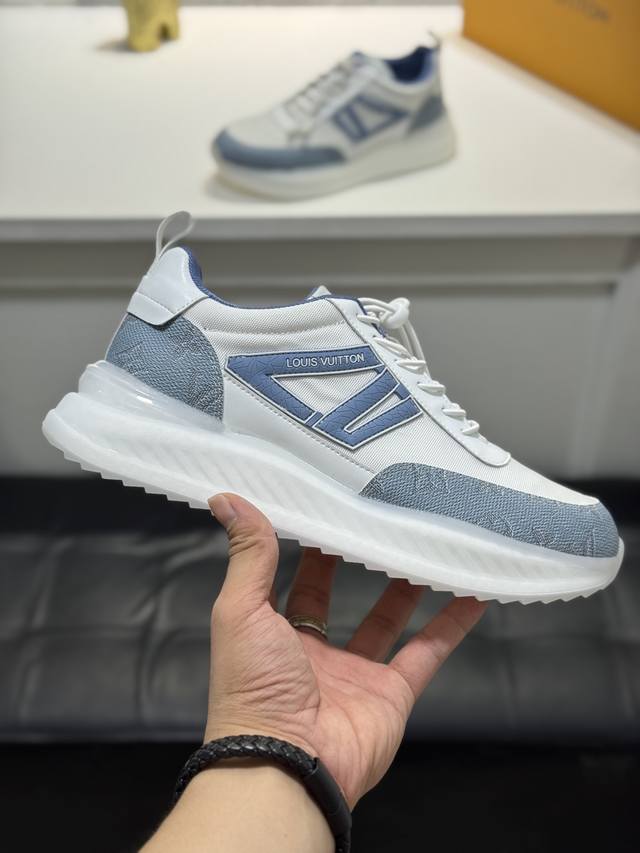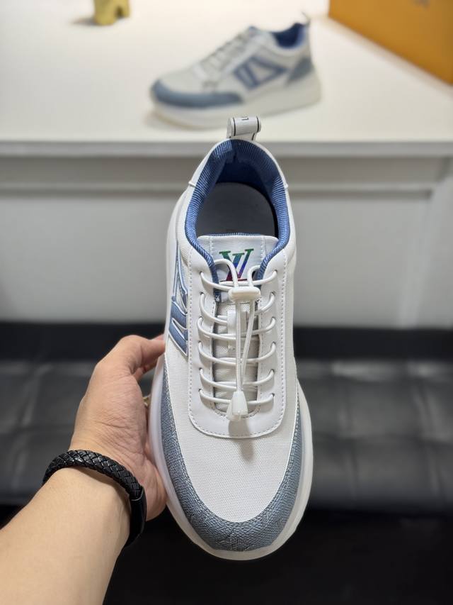 / 路易威登─顶级代购口路炸街男神爆款运动板鞋同步,鞋面意大利牛皮拼接,舒适透气,高品质拼接复杂工艺,进口透气网布内里垫,鞋底:原厂特供原版底,Tpu独家活动成型底