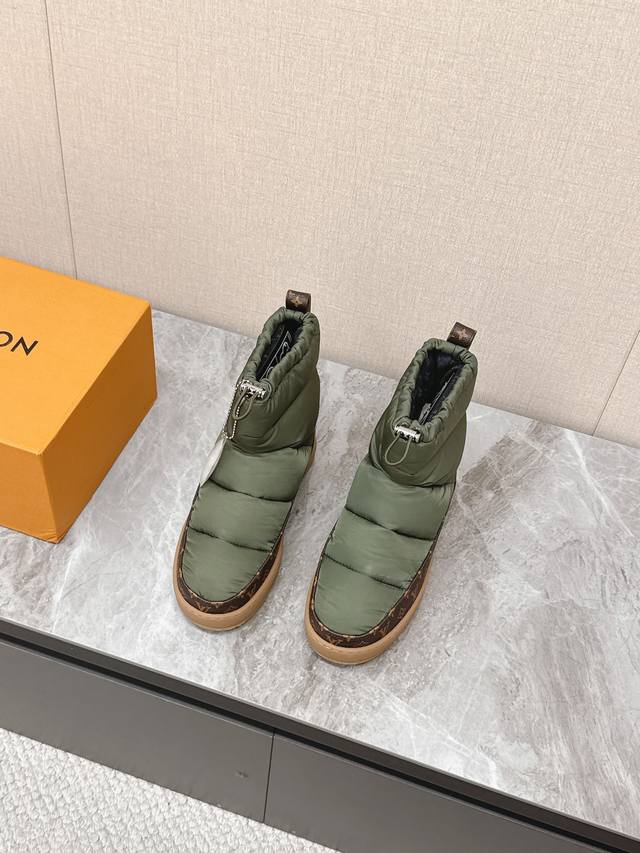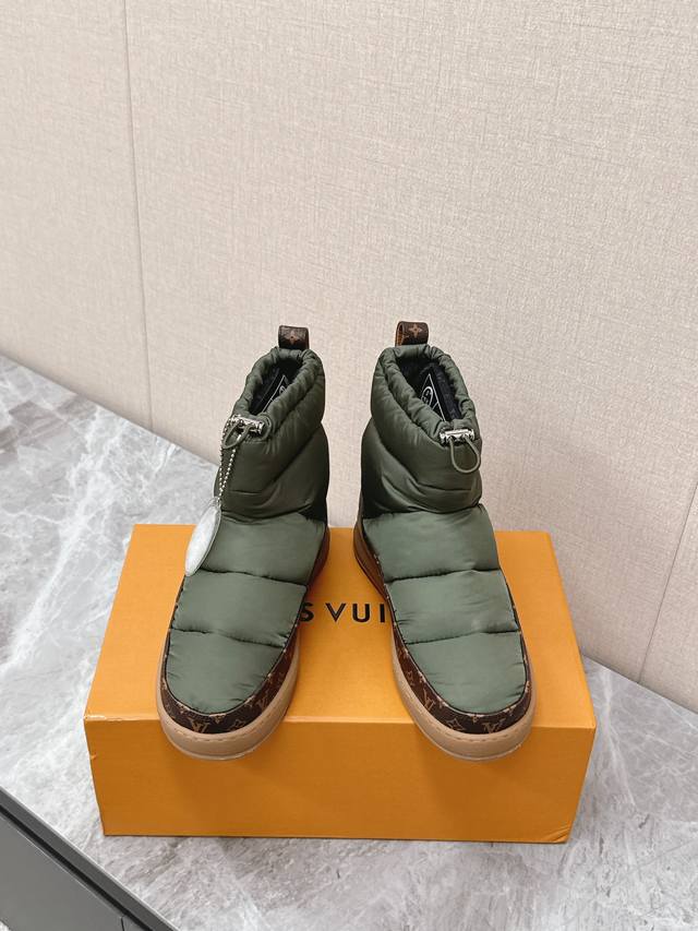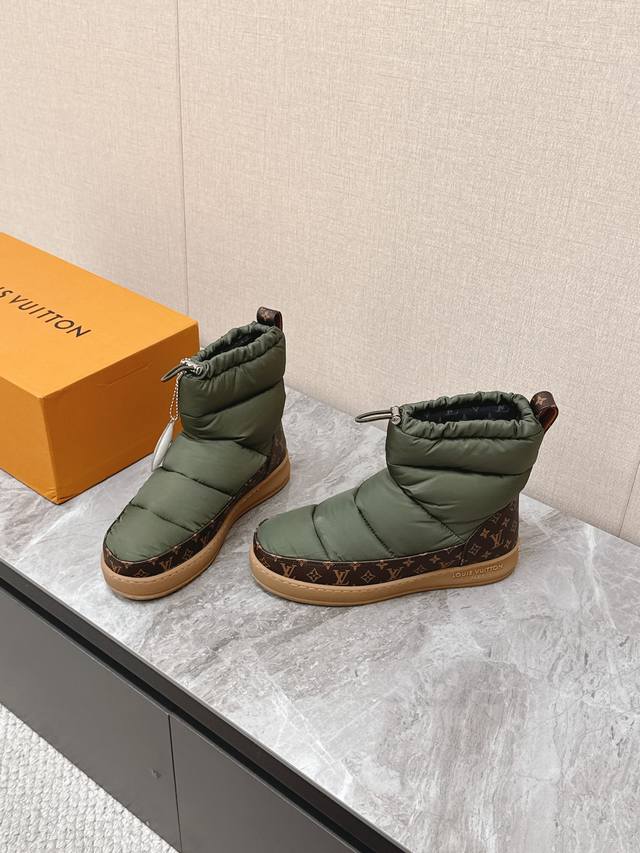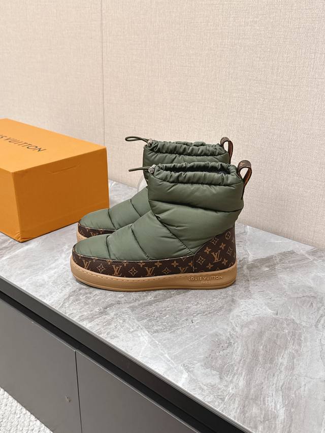 / 路易威登Louis Vuitton秋冬最新款雪地靴 超多明星网红种草 羽绒布鞋面 防水防风又保暖 羊毛尼内里舒适又透气,现在正当季,剁手党抓紧囤起来,冬天穿着鞋