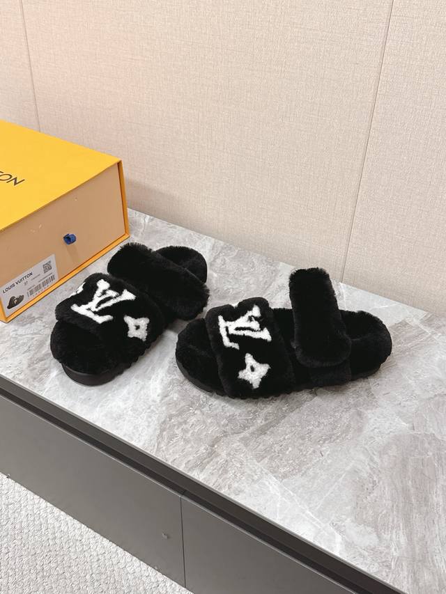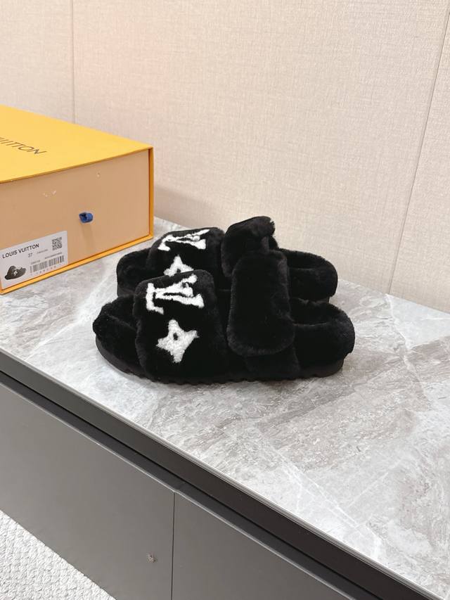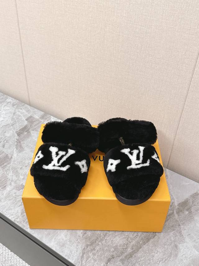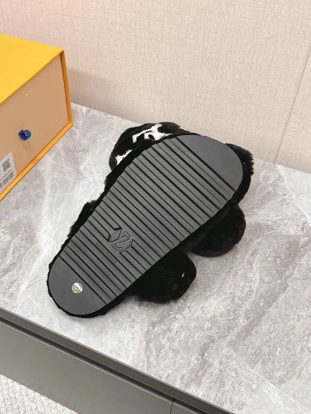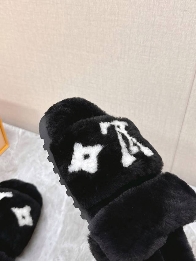 / 路易威登Lv秋冬最新款毛毛拖鞋~ 这双毛拖也是好好看非常高级呀 搭配秋冬的牛仔短裤 简直就是完美呀!穿上立马拥有理想的身高有没有!大爱款,有时尚元素,鞋面外表