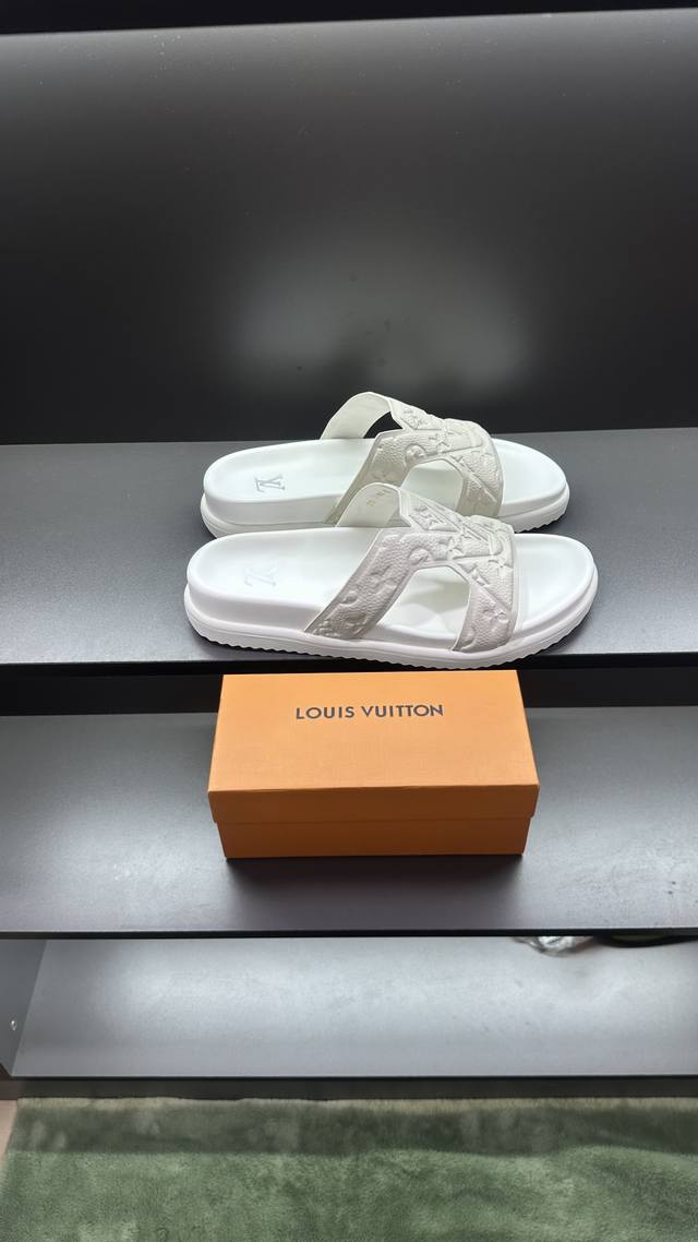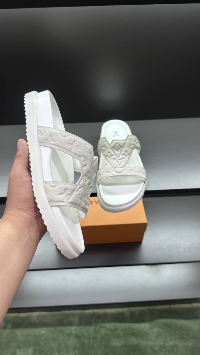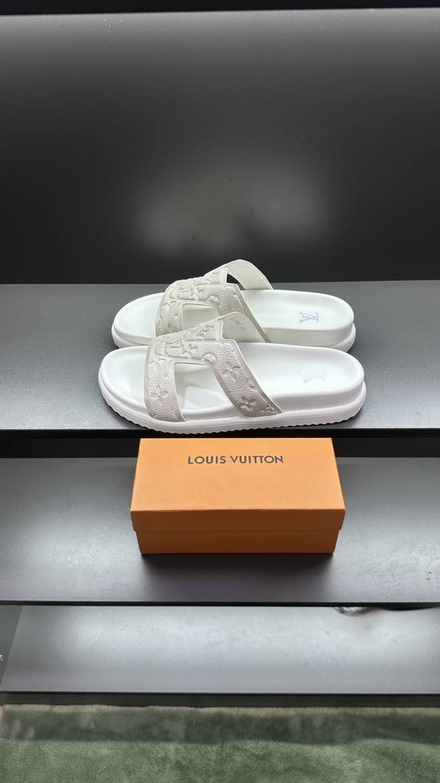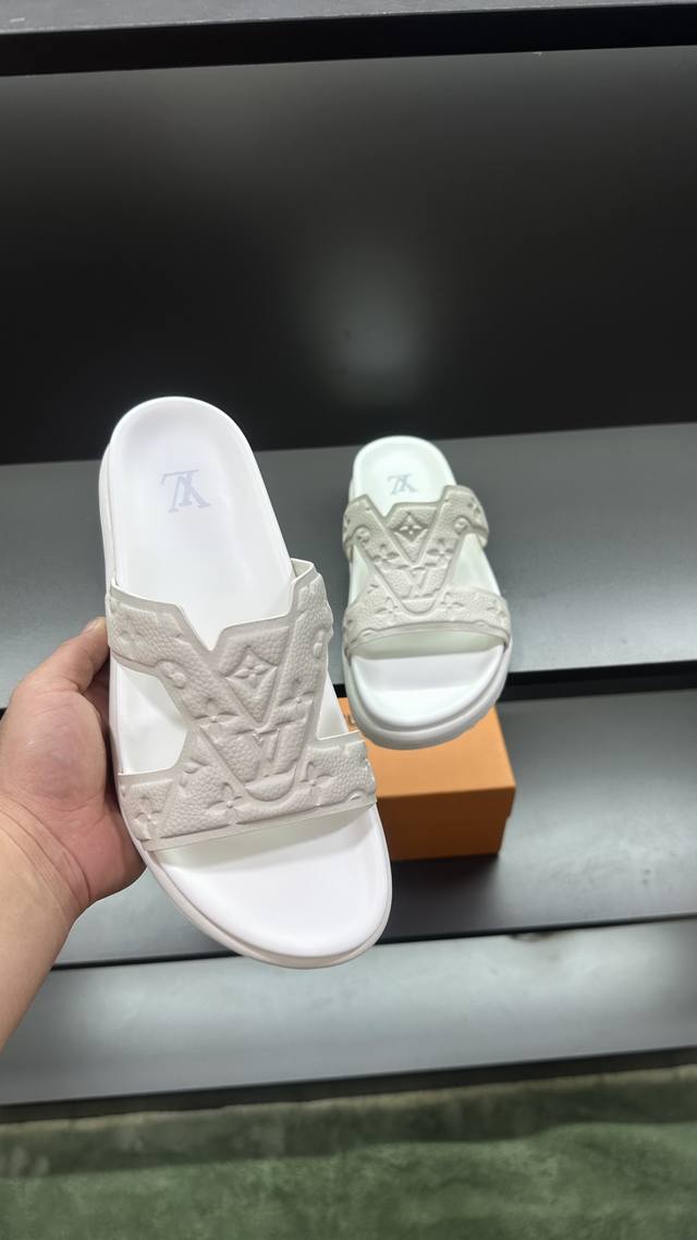顶级代购 Lv 男士春夏拖鞋专柜同步 鞋面意大利进口牛皮面料,标志图形高品质工艺,鞋底:原厂特供原版底,独家活动成型底超级舒适,原厂跟单货,高品质,可随意进出专柜,欢迎对比,码数38-45