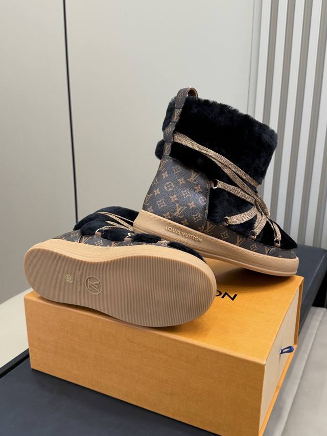 顶级品质 DDD Lv 25冬季女装滑雪系列多 DDD Lv Ski女装系列以创新设计重新定义经典冬季风格,融合功能性与奢华时尚,为冬季时尚带来全新视角,将精致与冒险融为一体。 DDD 雪地靴 填充90白鸭绒,保暖轻盈! DDD Size 35-41 DDD