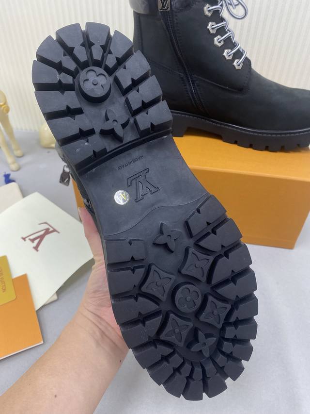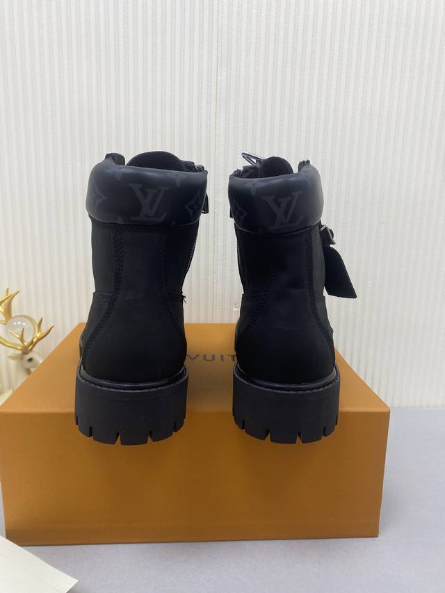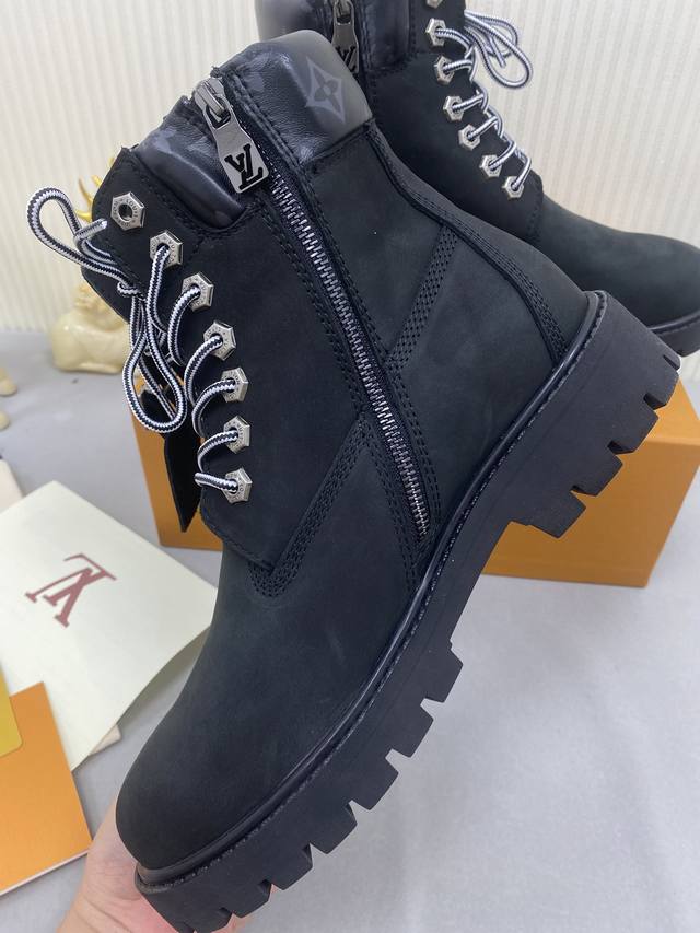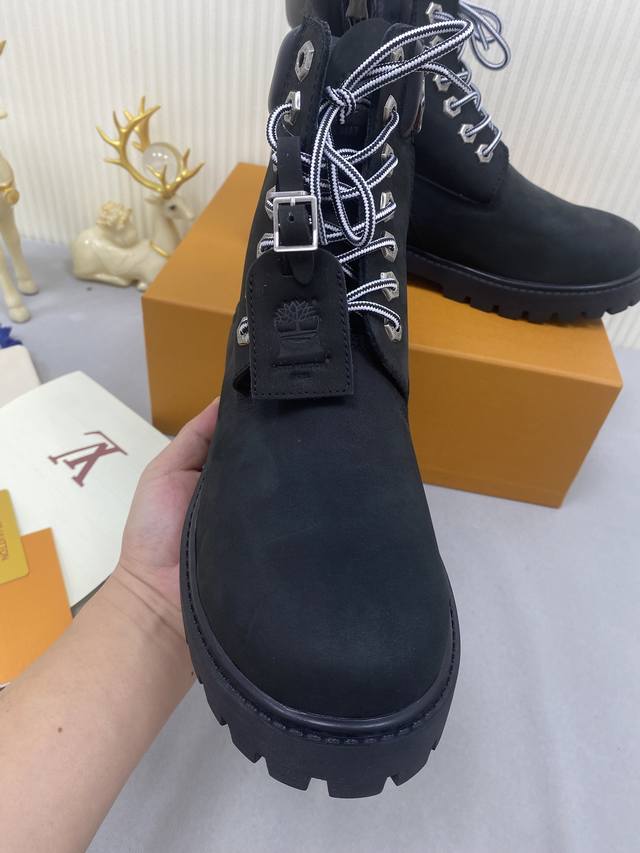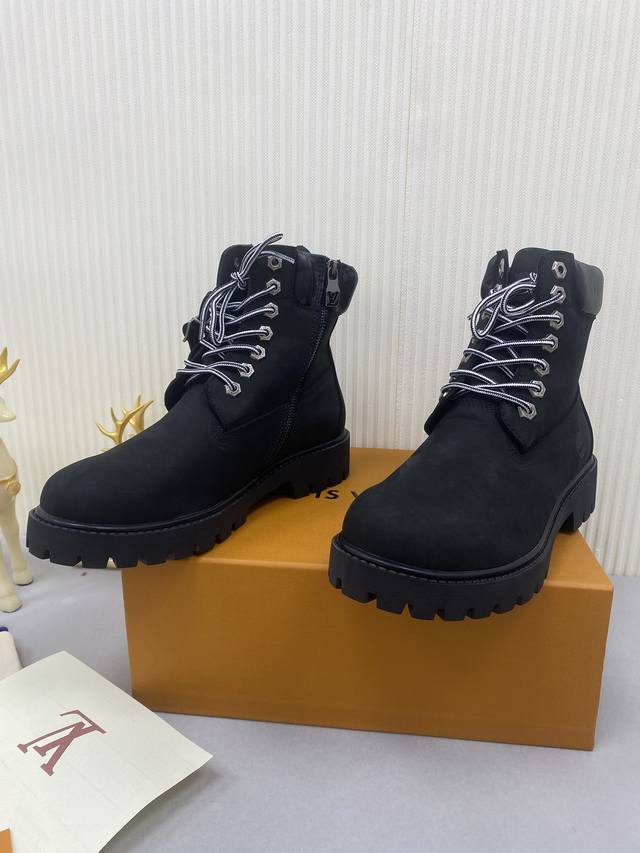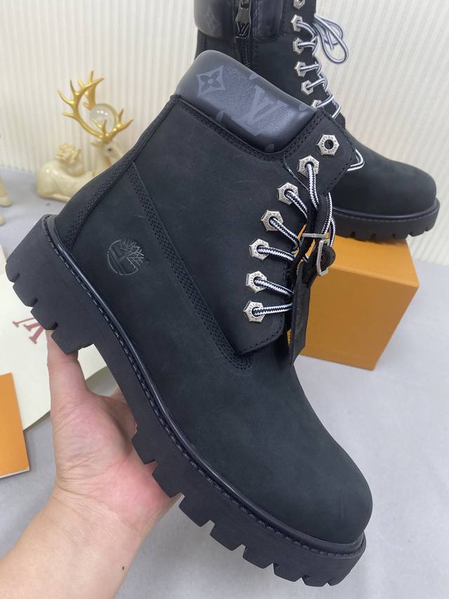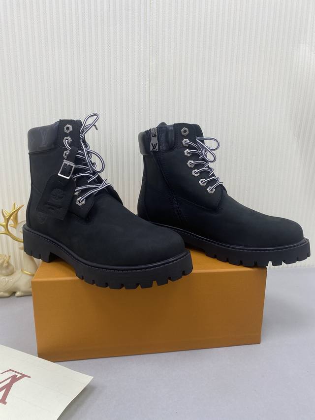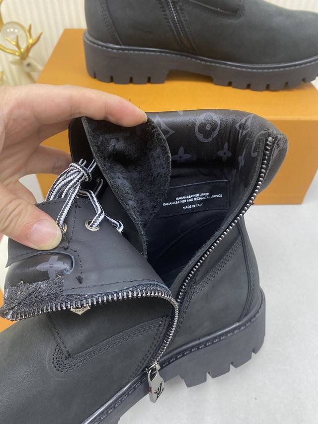 顶级版本:情侣款Lv X Timberland 添柏岚 联名款 老花 压花 大黄靴 及踝靴 短靴 Lv X Timberland 及踝靴取材 Monogram 压纹防水正绒面牛皮革,依托品牌精湛匠艺于意大利悉心重塑经典 Timberland 6 英寸靴型,以美式工装格调瞩目亮相 Pharrell Williams 打造的 秋冬男装秀。Monogram 压纹鞋舌、Timberland 原版鞋带和外底点睛考究细节,皮革标签抒写合作标识 配送专柜精美包装 面料: 原版定制进口头层牛皮 内里: 原版定制皮里 网里