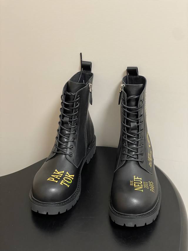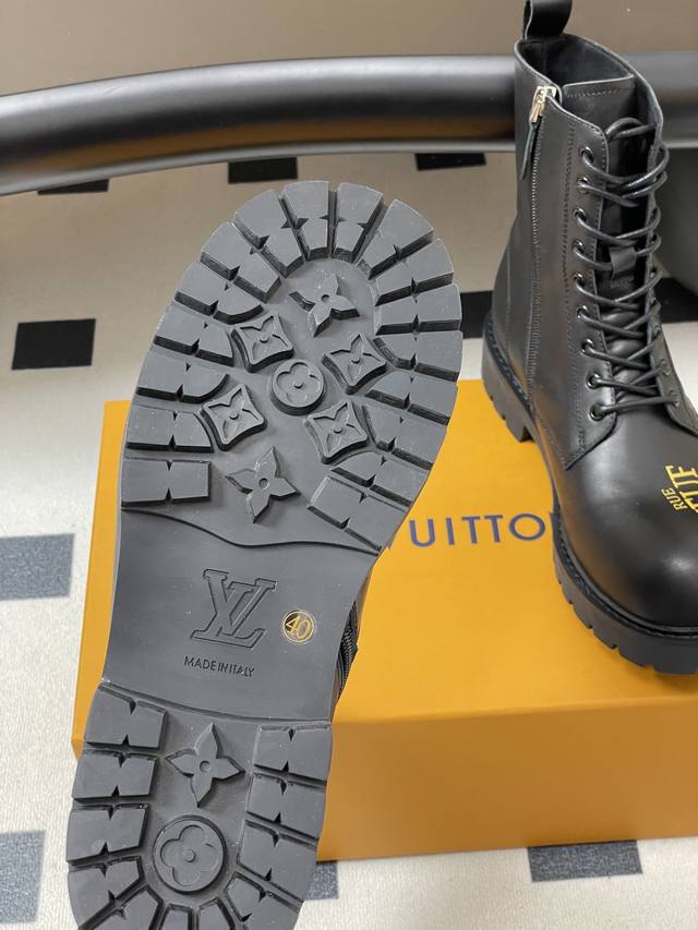 25Fw秋冬新款Louis Vuitton Lv 涂鸦马丁靴系列情侣装侧拉链短靴系带厚底马丁靴 本款涂鸦铆钉马丁靴承载军旅灵感和路易威登的旅行传承,为舒软牛皮革