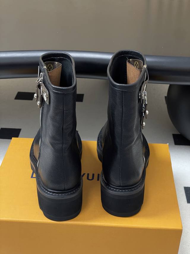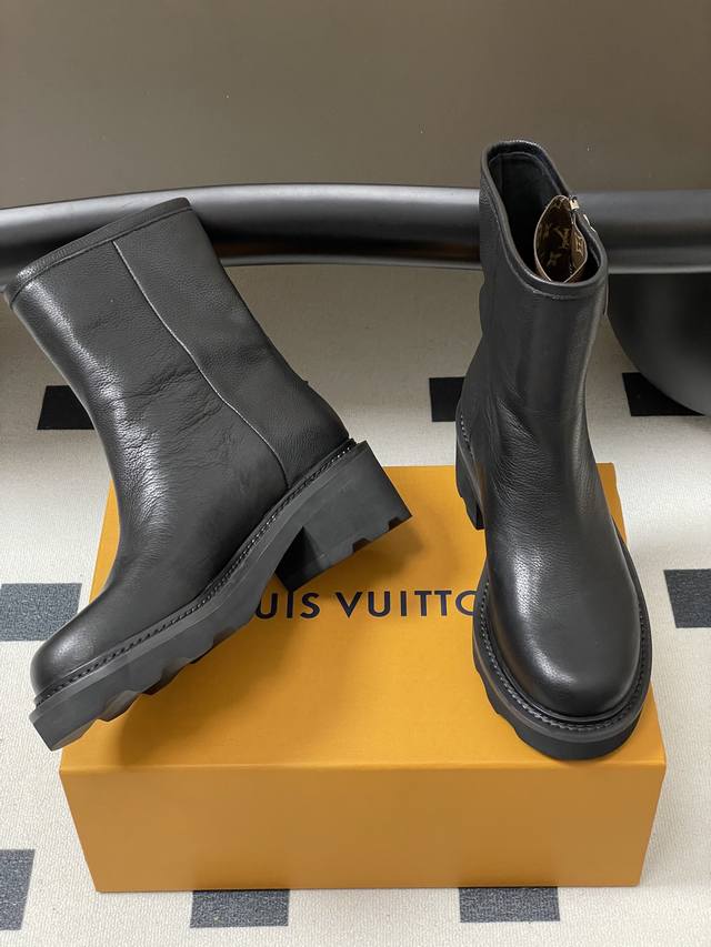/ 25Fw秋冬新款Louis Vuitton Lv Beaubourg及踝靴老花吊坠宽筒矮靴厚底侧拉链短靴 本款 Lv Beaubourg及踝靴以牛皮革呈现考究质