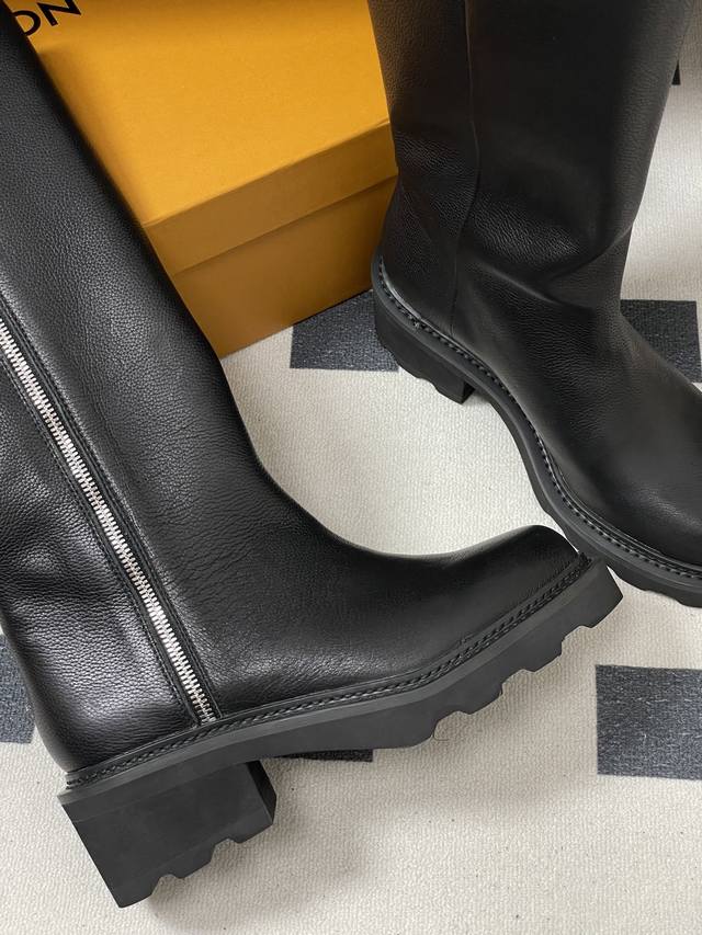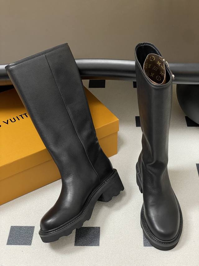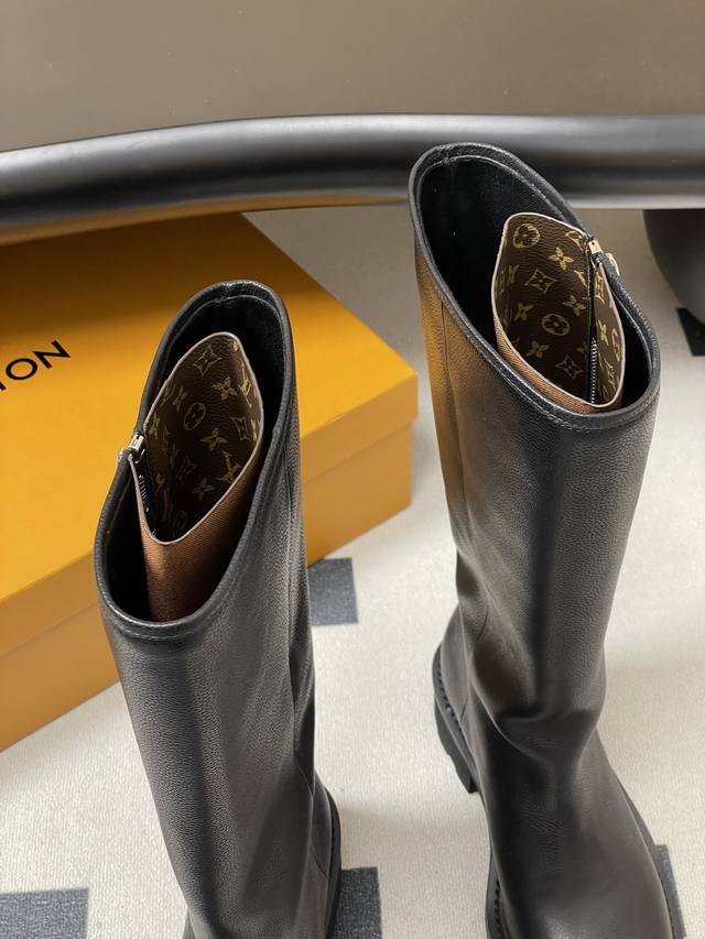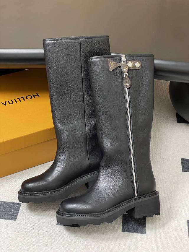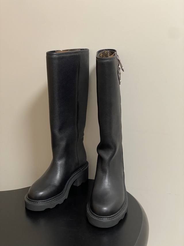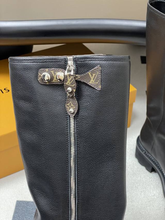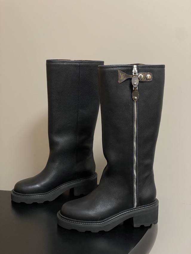 / 25Fw秋冬新款Louis Vuitton Lv Beaubourg高筒靴老花吊坠骑士靴厚底侧拉链长靴 本款 Lv Beaubourg高筒靴取材柔软粒面羊皮革,