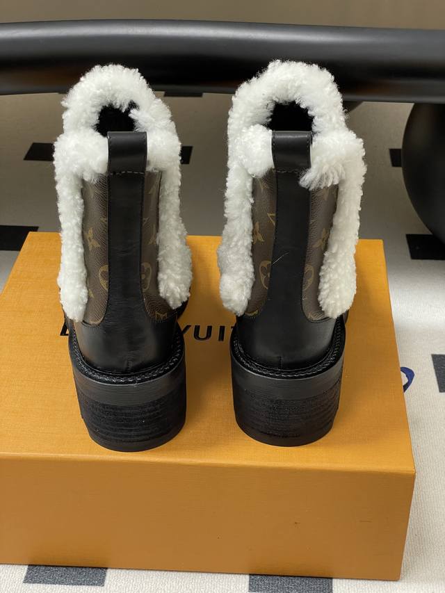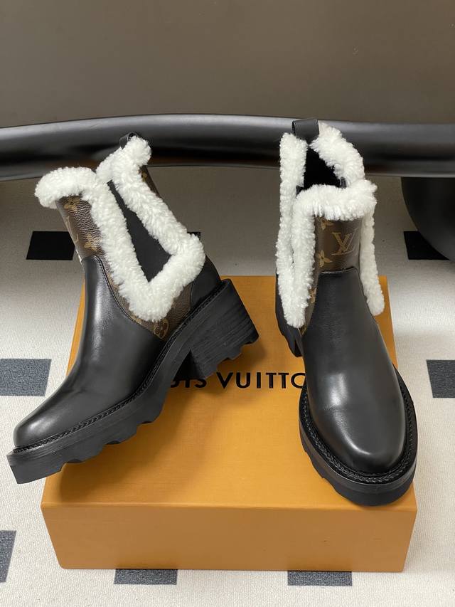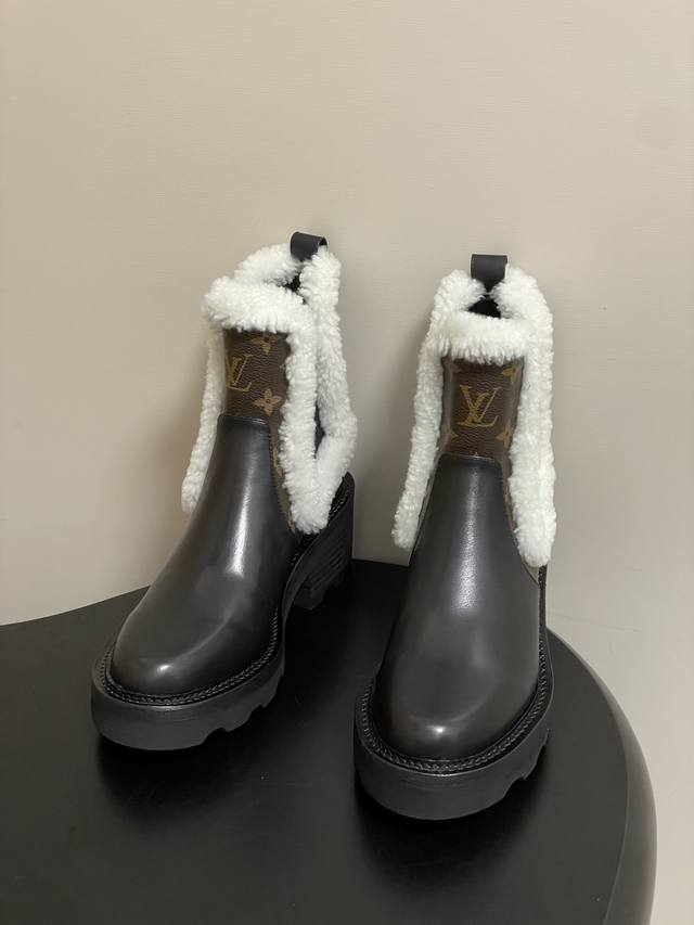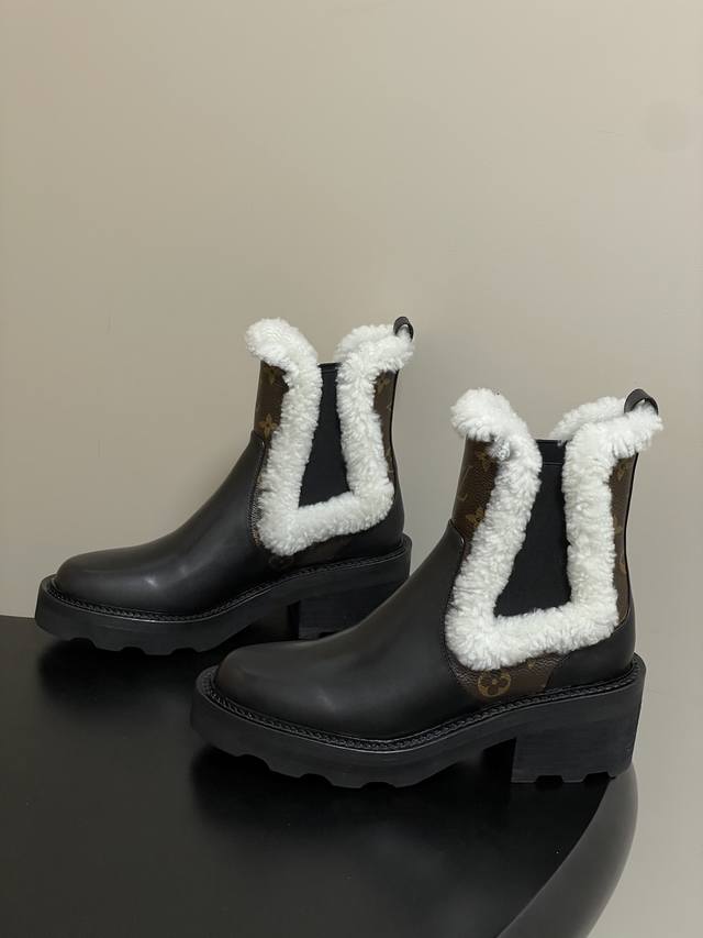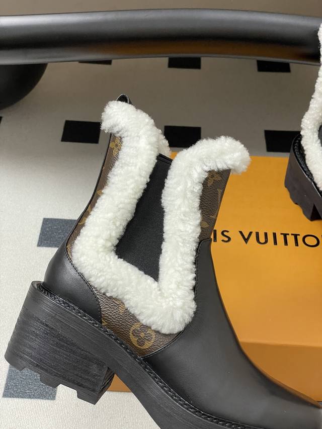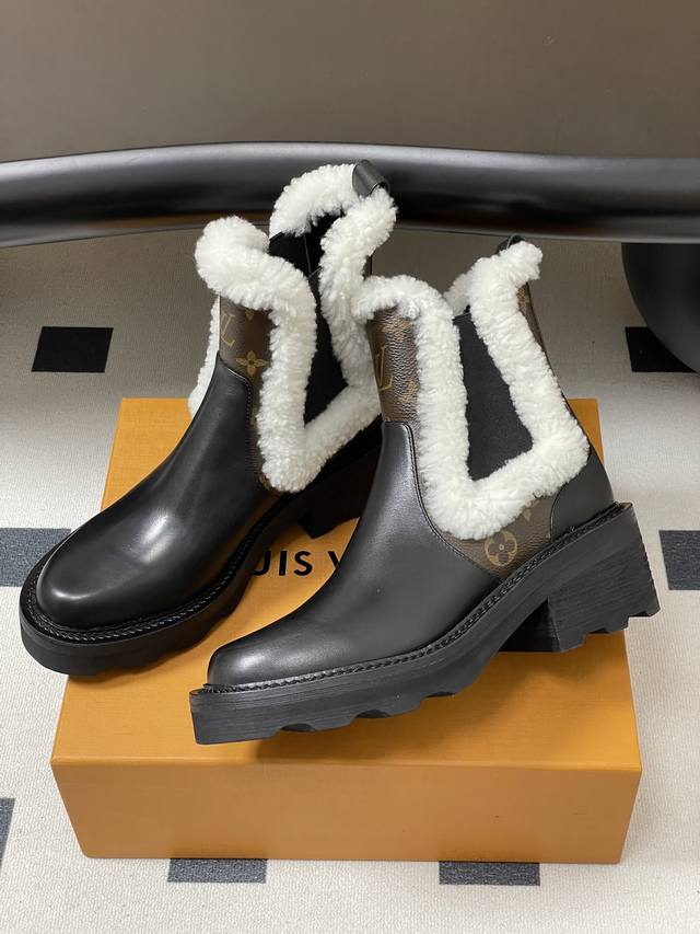 / 25Fw秋冬新款Louis Vuitton Lv Beaubourg 羊毛口切尔西及踝靴松紧带棋盘格老花皮拼色厚底高跟切尔西短靴 本款 Lv Beaubourg