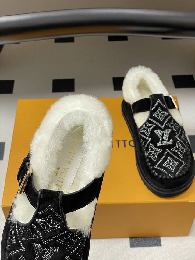 25Ss秋冬新款Louis Vuiteeon 路易威登Lv Colorado Comfort 玛丽珍鞋羊毛乐福鞋经典老花字母刺绣T字扣带厚底毛毛鞋 本款Colorado Comfort玛丽珍鞋取材天鹅绒般丝滑的绒面牛皮革,与羊毛皮内衬共筑舒适穿着体验。鞋面融入Monogram 刺绣图案,铭纹搭扣方便调节鞋带松紧。轻盈微型外底完善潮流格调。 鞋面:高丝光牛反绒 内里垫脚:羊毛 鞋底:开模Eva橡胶大底 码数:35-39 40.41定做不退换