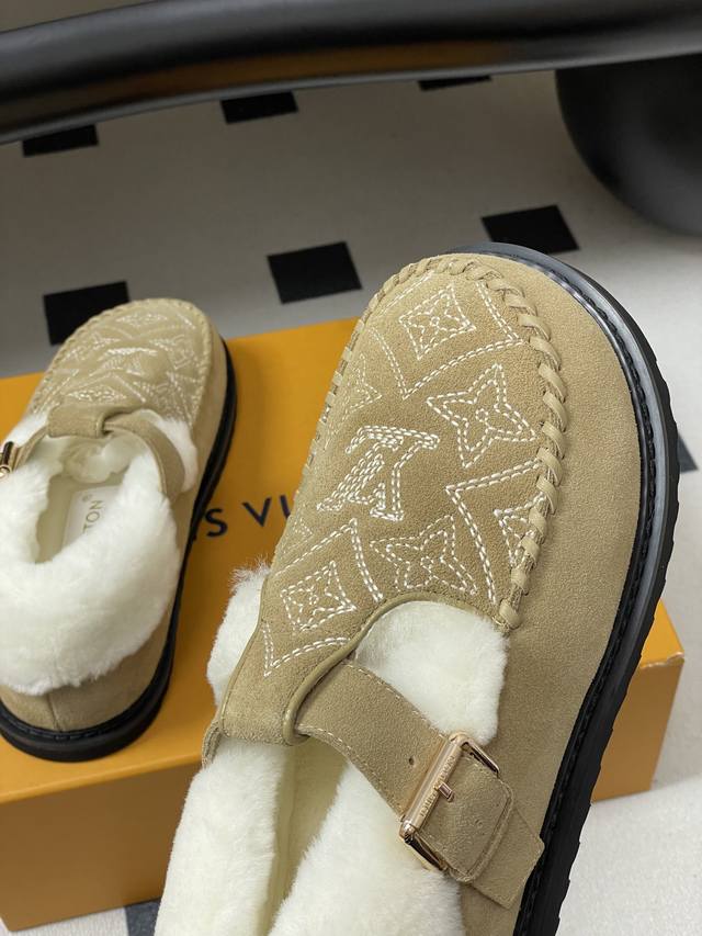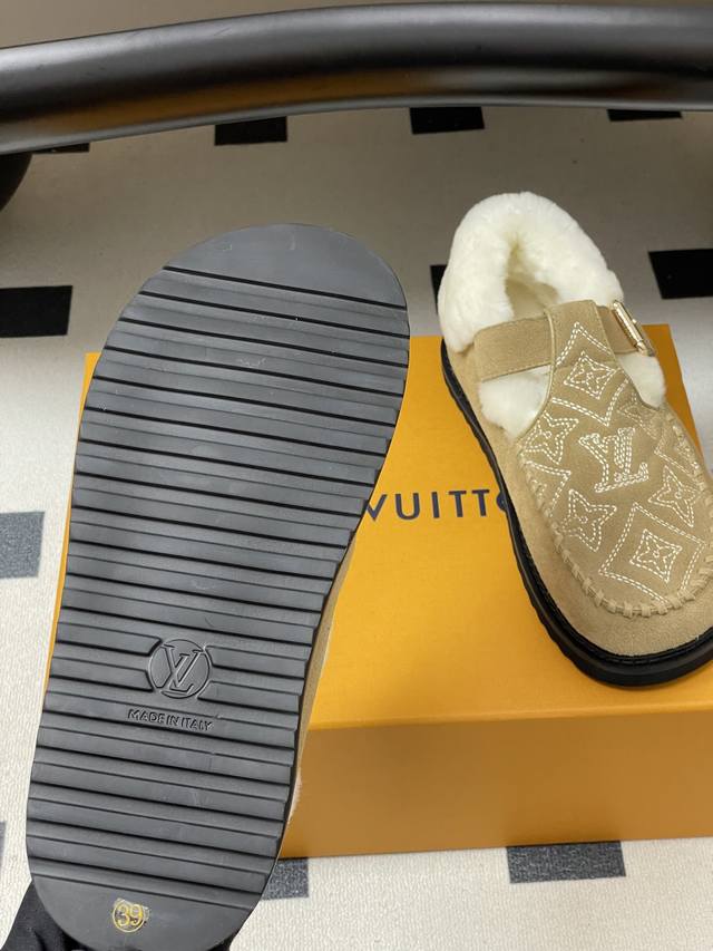 25Ss秋冬新款Louis Vuiteeon 路易威登Lv Colorado Comfort 玛丽珍鞋羊毛乐福鞋经典老花字母刺绣T字扣带厚底毛毛鞋 本款Colorado Comfort玛丽珍鞋取材天鹅绒般丝滑的绒面牛皮革,与羊毛皮内衬共筑舒适穿着体验。鞋面融入Monogram 刺绣图案,铭纹搭扣方便调节鞋带松紧。轻盈微型外底完善潮流格调。 鞋面:高丝光牛反绒 内里垫脚:羊毛 鞋底:开模Eva橡胶大底 码数:35-39 40.41定做不退换