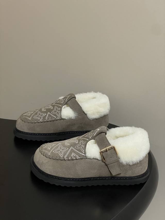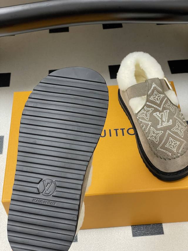 25Ss秋冬新款Louis Vuiteeon 路易威登Lv Colorado Comfort 玛丽珍鞋羊毛乐福鞋经典老花字母刺绣T字扣带厚底毛毛鞋 本款Colorado Comfort玛丽珍鞋取材天鹅绒般丝滑的绒面牛皮革,与羊毛皮内衬共筑舒适穿着体验。鞋面融入Monogram 刺绣图案,铭纹搭扣方便调节鞋带松紧。轻盈微型外底完善潮流格调。 鞋面:高丝光牛反绒 内里垫脚:羊毛 鞋底:开模Eva橡胶大底 码数:35-39 40.41定做不退换
