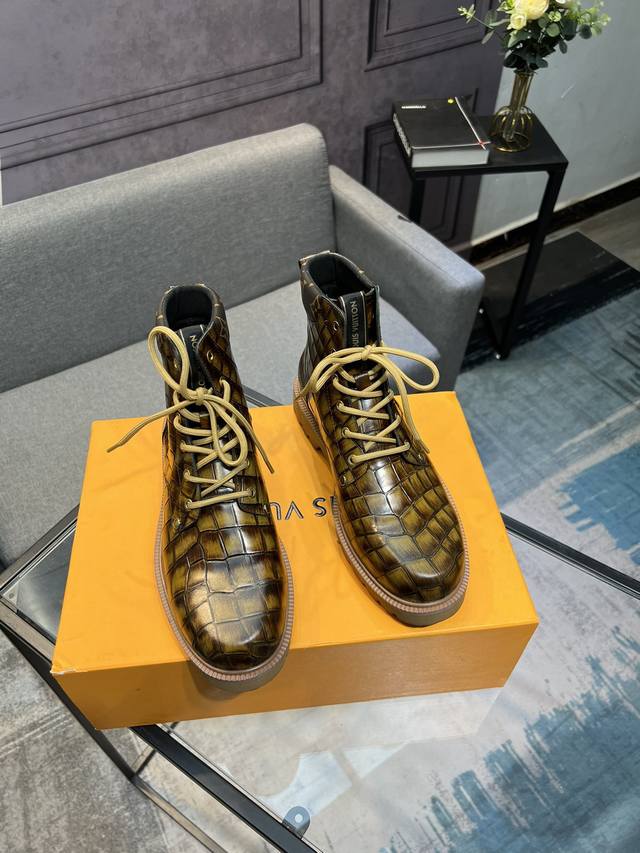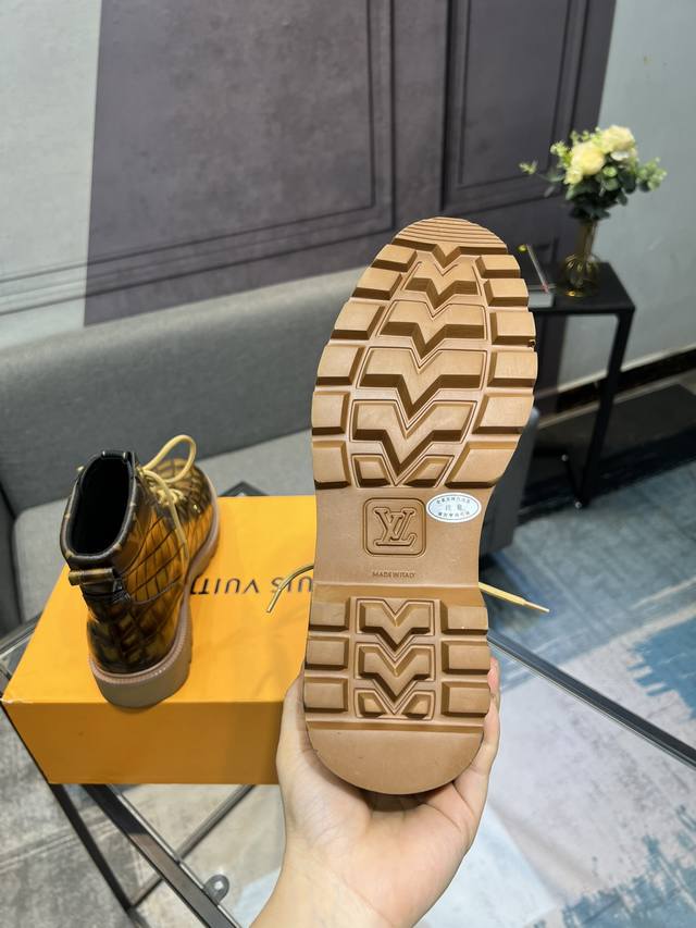 L家 最新款Lv男士商务休闲男靴,奢华尊贵那是必须的,全部采用进口原版头层牛皮,只为打造更为舒适的穿着体验,顶级进口水染全牛里,原版高耐磨大底! Size:男3
