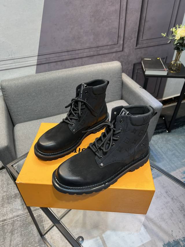 L家 最新款Lv男士商务休闲男靴,奢华尊贵那是必须的,全部采用进口原版头层牛皮,只为打造更为舒适的穿着体验,顶级进口水染全牛里,原版高耐磨大底! DDD Size:男39-44; 38 45 46订做 DDD