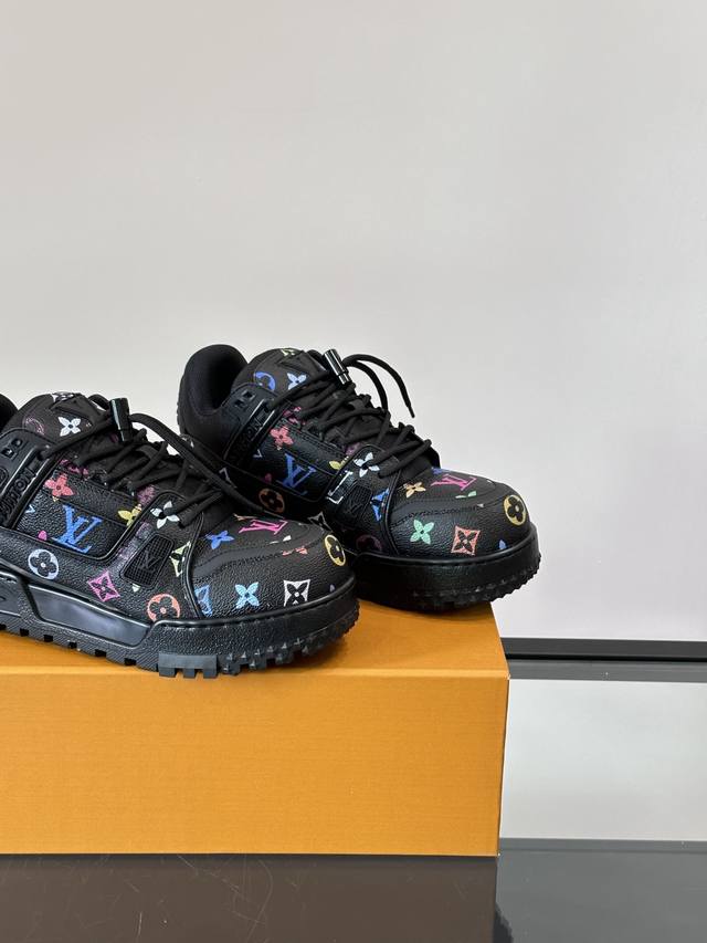/ l Trainer Maxi小胖丁休闲运动鞋,村上隆联名新配色,将经典 Lv Trainer 运动鞋瞩目放大,是 春夏男士时装秀的灵感延伸。橡胶 L.V标识点缀