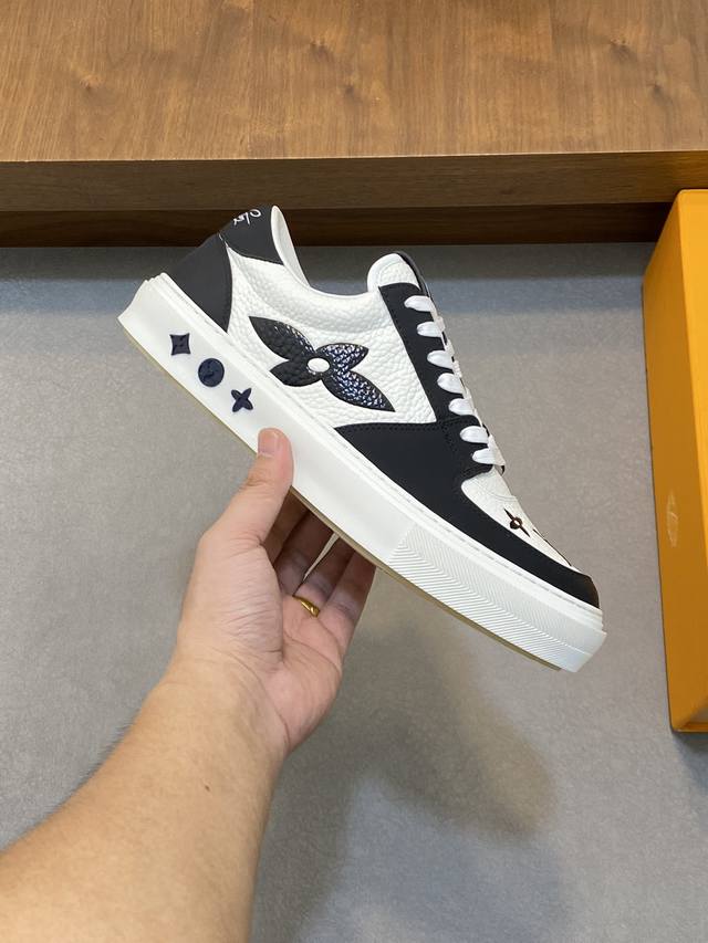 Louis新品男士高端休闲运动鞋|选用进口头层牛皮|鞋面立体压纹经典Monogram 图案|原版橡胶大底,耐磨舒适|Monogram 花卉点缀橡胶外底|头层小牛皮内里|百搭经典款式 Size:39-44 38.45定做