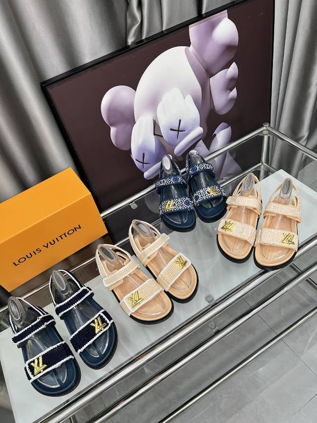 Louis Vuitton路易威登春夏新款拖鞋火爆上市,1:1高级定制,秒杀一切仿品,原版开模Logo装饰,既时尚又美观,面料:存手工针织打造,内里羊皮,精美原版鞋楦,大底原版开模,鞋底加水台4厘米。码数35 42,多色色可选带图下单,新色会陆续更新