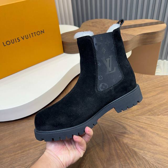 / Louis Vuitton 路易威登 -高端品质 原单 男靴 -鞋面:高丝光牛皮拼接皮毛一体工艺、鞋身车缝品牌注塑模块 -大底:原版Tpr橡胶; -超高品控 做