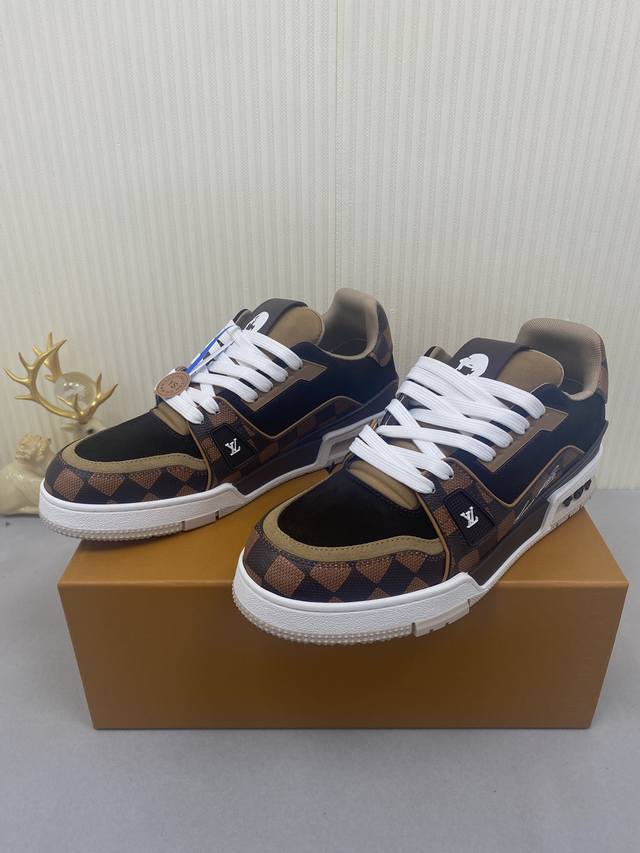 Louis Vuitton 驴家的爆款! Trainer板鞋,每个人都必须入的款,绝不后悔! 超级百搭高级!什么衣服都好搭。最主要是超耐看的。 顶级代工厂P制程超严格!材料都是海外定制的顶级牛皮,皮纹质感都是原版的感觉 超高级,特别是鞋子折弯的时候出来的纹路,完完全全就是Zp的感觉! 大底也是我们私模定制的,独家把控,整个字体和凹凸感,真假难辨。 Size:#女35-41 #男38-46 女40 41 男45 46 定做不退换