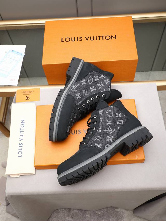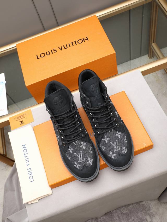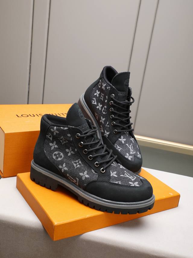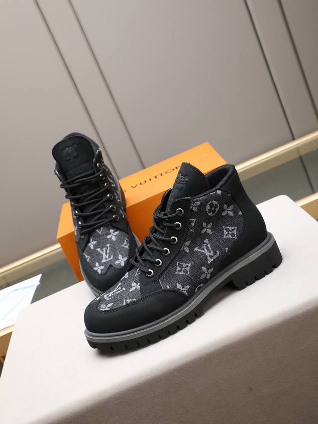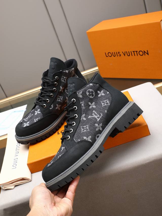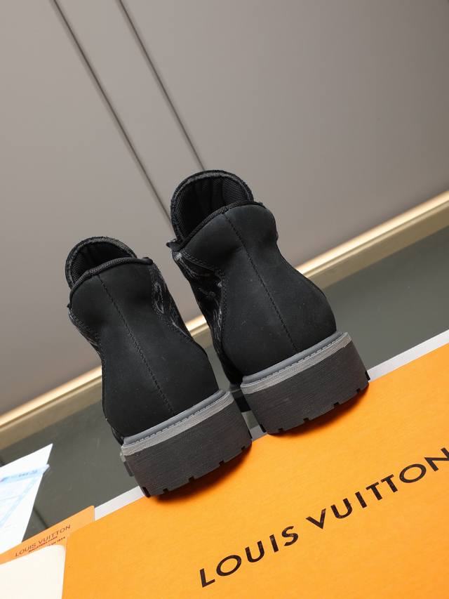 / Louis Vuitton Ss25 Lv驴牌新款厚底系带大头鞋男士休闲鞋高帮小短靴。本款 靴子以头层小牛皮革裁出轻盈舒适鞋身。厚实 Eva外底点缀醒目凸纹,亦