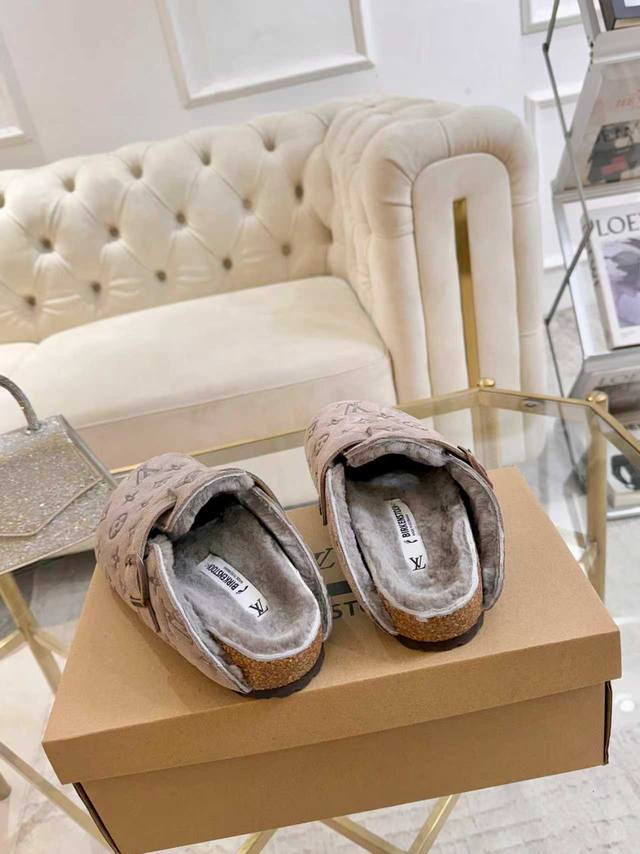 Lv情侣款羊毛拖鞋|连脚尖都散发着高级感 这双Lv经典勃肯拖鞋,我们做到了 高版本 的极致还原,细节里都是奢侈的印记。 原版提花搭配细腻牛猄皮,复古质感信手拈来