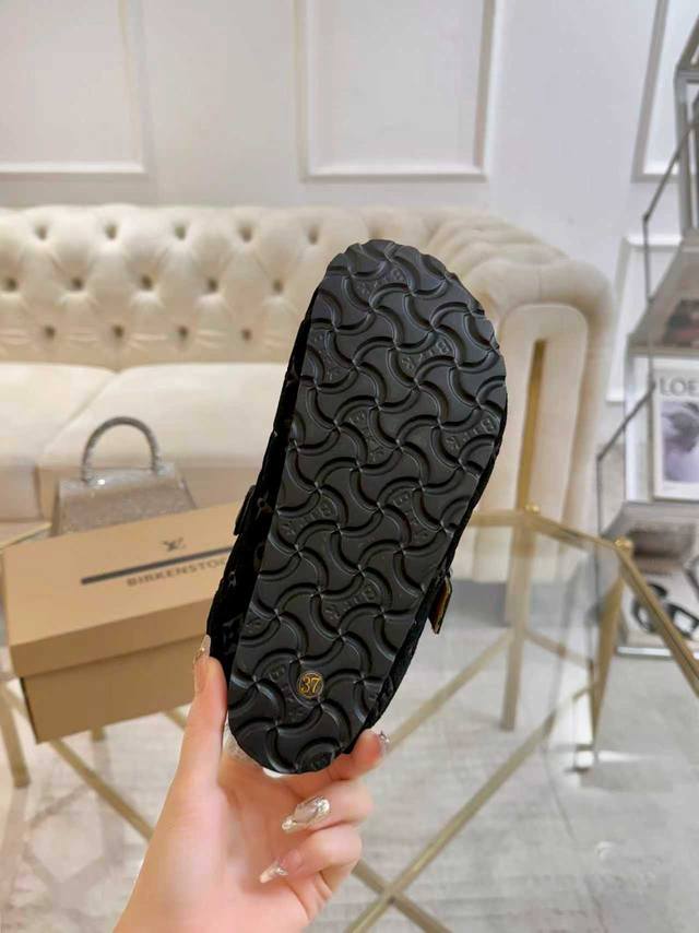 Lv情侣款羊毛拖鞋|连脚尖都散发着高级感 这双Lv经典勃肯拖鞋,我们做到了 高版本 的极致还原,细节里都是奢侈的印记。 原版提花搭配细腻牛猄皮,复古质感信手拈来