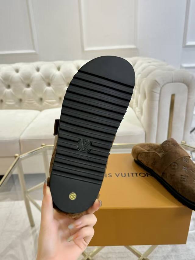 Lv情侣款羊毛拖鞋|高级感拉满,脚底都是奢华 这双Lv经典包头拖鞋,我们做到了 高版本 的极致还原! 核心优势一目了然: 原版提花+牛猄面料,质感细腻,一眼高级