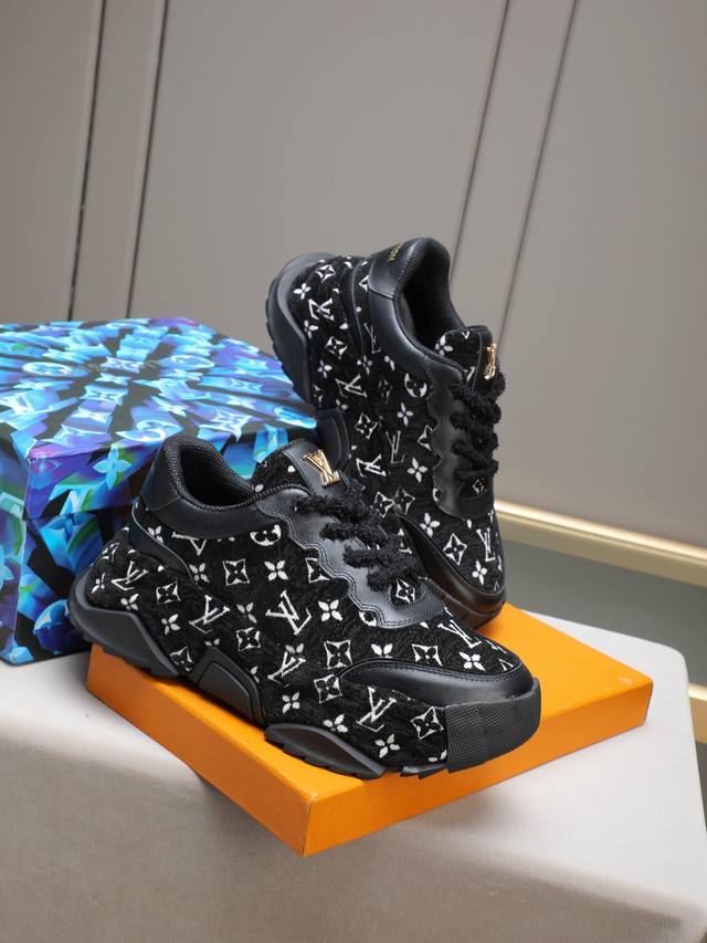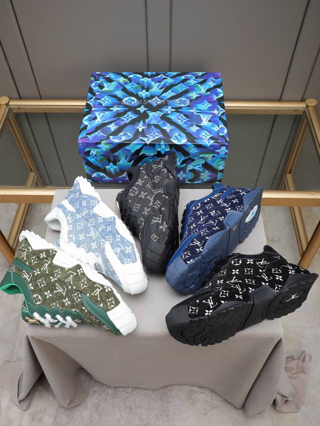 工厂p价p: 飞机盒10 原版开发 品质出货 欢迎对比 Lv板鞋系列 Lv Trainer Maxi运动鞋将成衣系列的宽松廓形引入Virgilabloh笔下的L