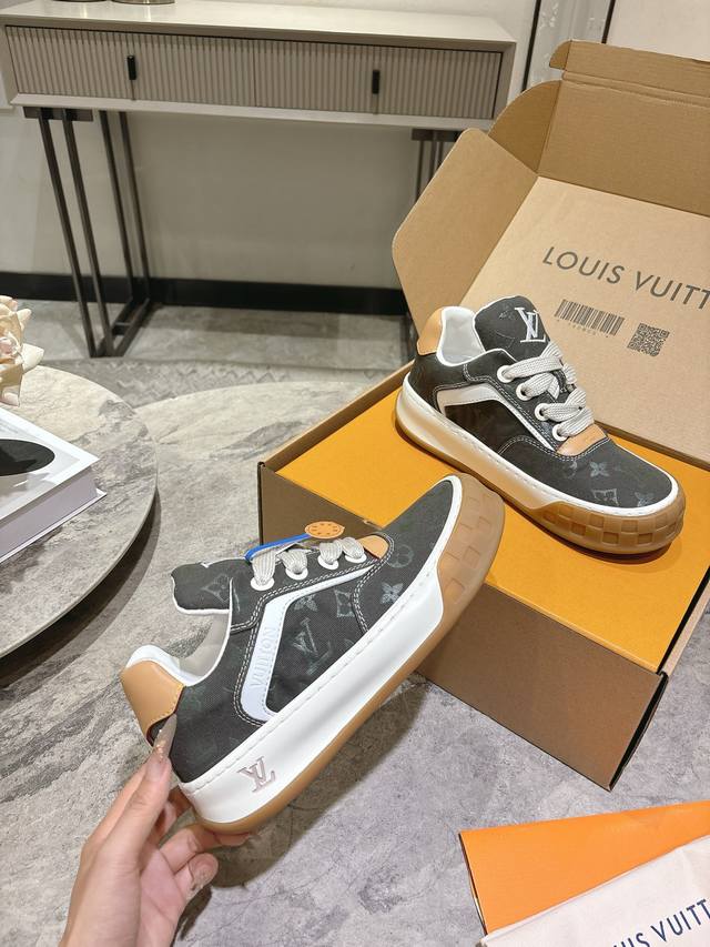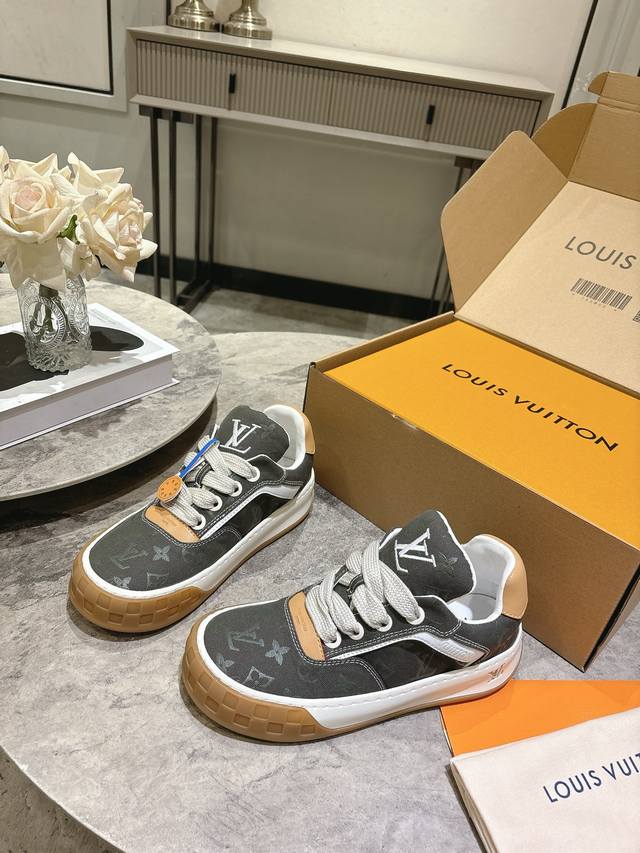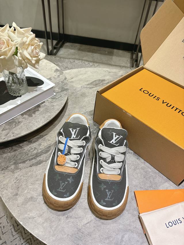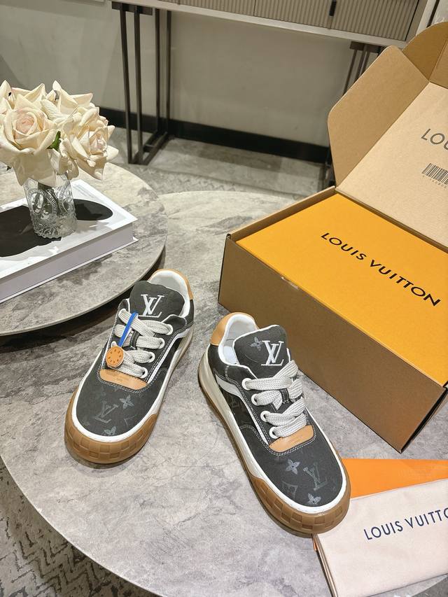 / Lv秋冬最新款情侣款新款Tilted男士滑板鞋 低帮运动鞋 厚底饼干鞋 这双鞋必须拿下 休闲百搭 跟上潮流的休闲运动鞋橡胶鞋底轻盈耐磨,日常穿搭无压力。鞋舌 后