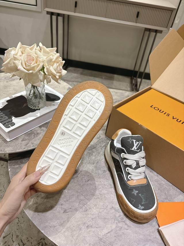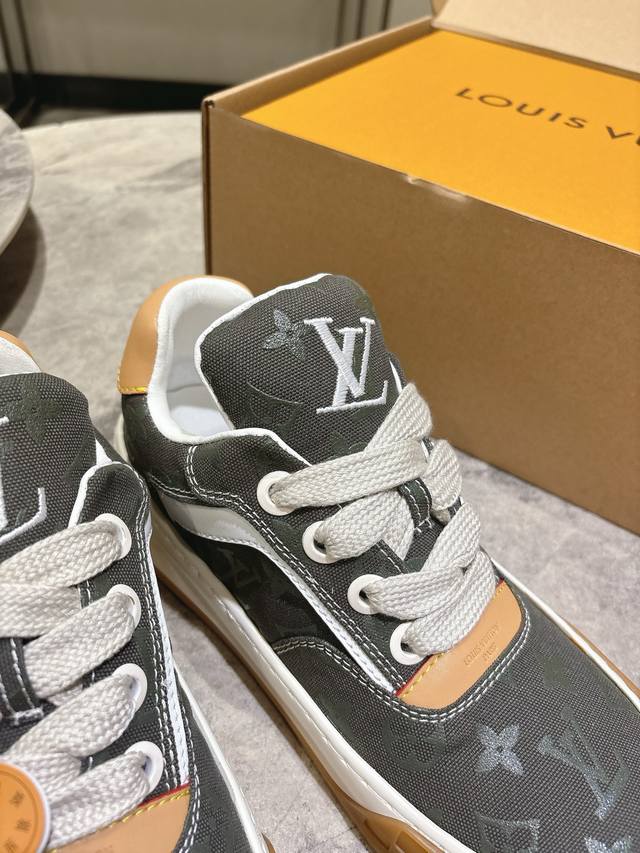 Lv秋冬最新款情侣款新款Tilted男士滑板鞋 低帮运动鞋 厚底饼干鞋 这双鞋必须拿下 休闲百搭 跟上潮流的休闲运动鞋橡胶鞋底轻盈耐磨,日常穿搭无压力。鞋舌 后