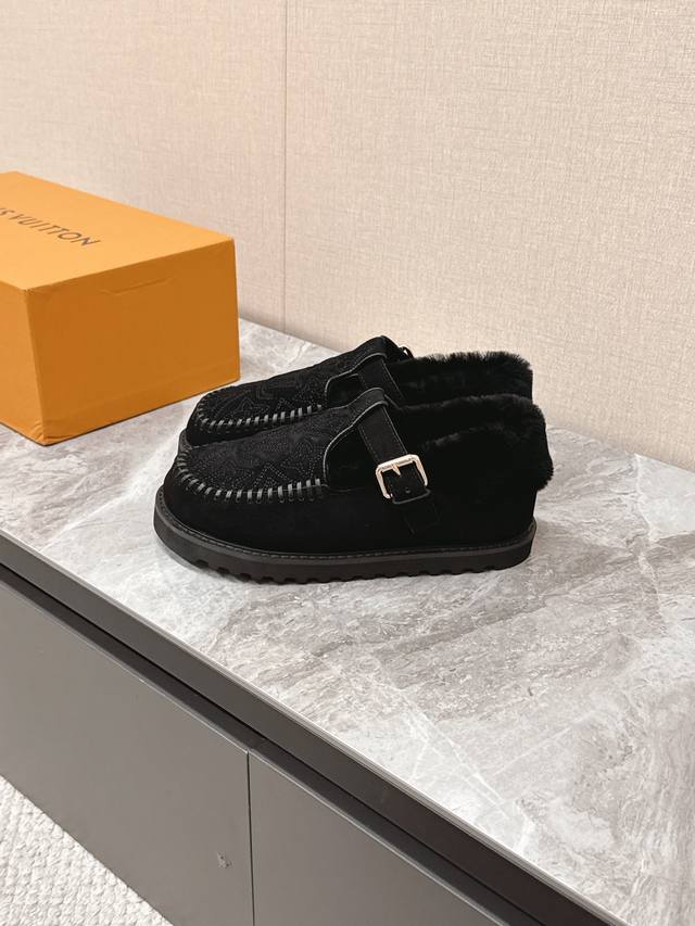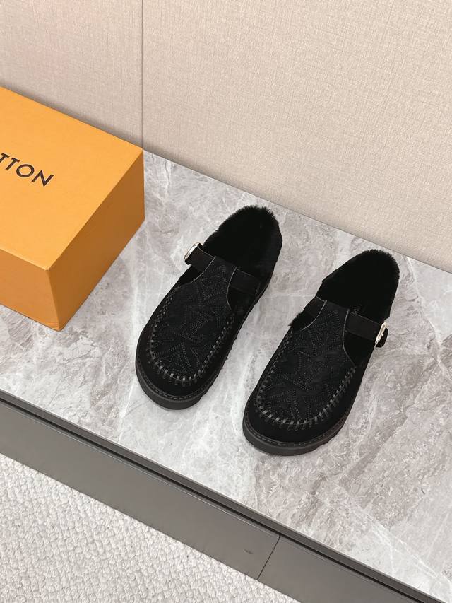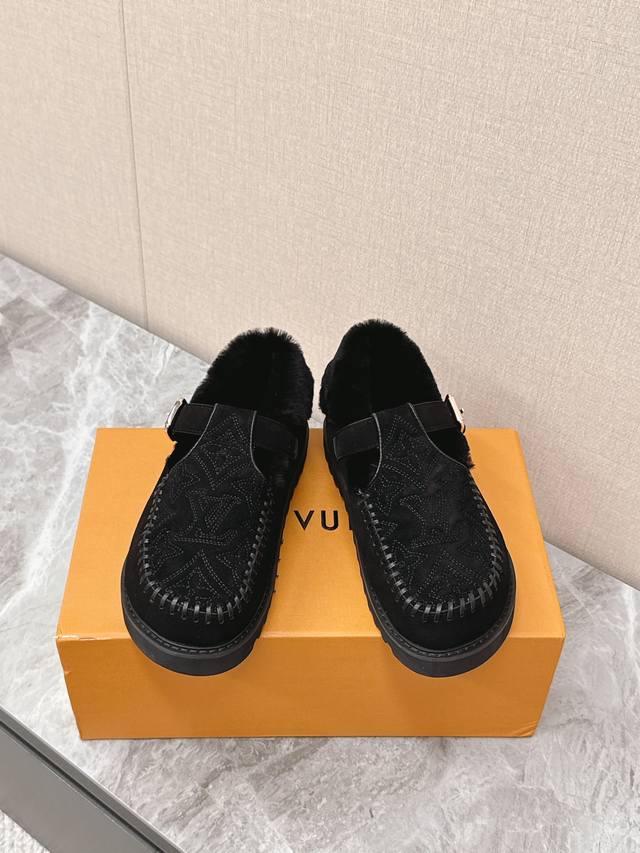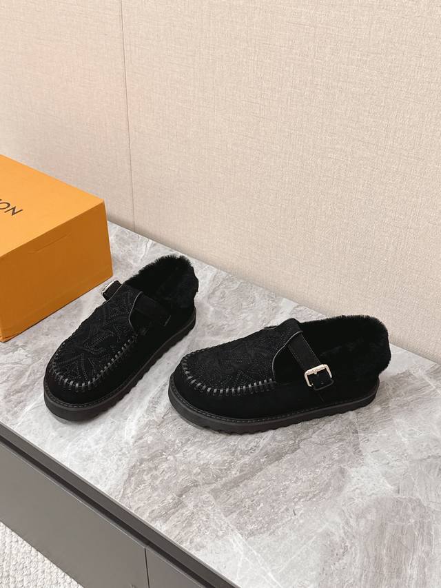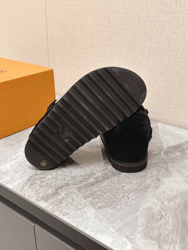 Lv路易威登最新款秋冬新款纯羊毛拖厚底增高外穿羊毛拖 半包羊毛拖后跟附带固定扣小个子必入款 增高显瘦 精致高级 慵懒又不乏高级感,毛茸茸的太可爱了!鞋面、内里、垫脚采用全真羊毛,保暖舒适的同时质感拉满 码数:35-41