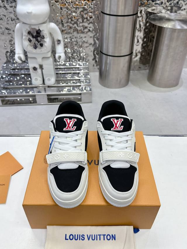 2024新款 代购品质lv~路易威登lv Trainer最好看的运动鞋,驴牌力推新品,官网限定款复古篮球运动鞋!高帮低帮均花血本购入原版1:1精准复刻、细节很无敌、诚意满满、进口定制原版牛皮,原版一致套包做法,细节百分百还原、私模定制原版一体成型tpu大底、区别于别家、没有原版是开不出这效果的!