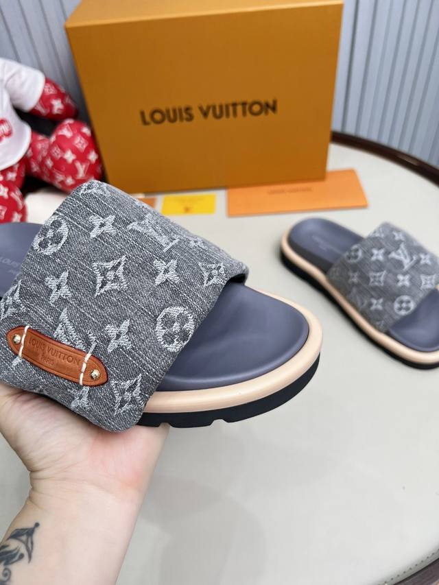 Lv驴牌L家 2025爆款 浮雕Logo 压花 凉拖鞋 本款 pool pillow Comfort 平底凉拖取材科技织物,以高频压印技术重绎 Monogram 图案。柔软加垫鞋面搭配可调节魔术贴,舒适韧性鞋垫再添和谐色彩 面料: 原版定制科技织物 内里:柔软羊皮里 鞋底:原版开模橡胶发泡大底 Size: 35-45 DDD