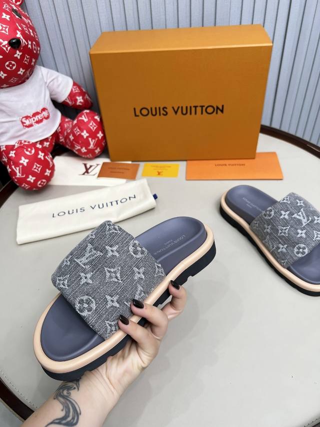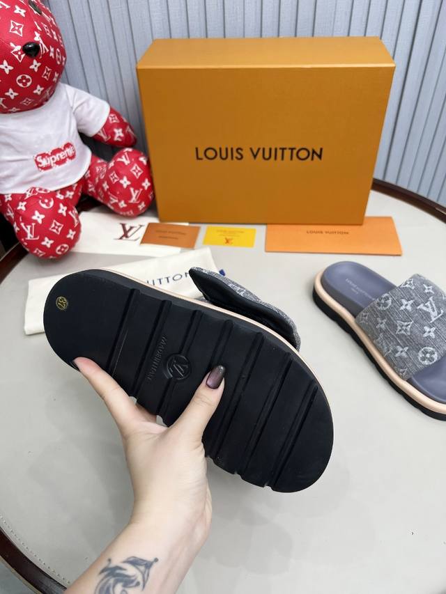 出厂价Pp: 早春新品上市 Louis Vuitton 路易威登爆款情侣压花拖鞋超级百搭瘦腿神器厚底设计活力十足,上脚舒适优雅...