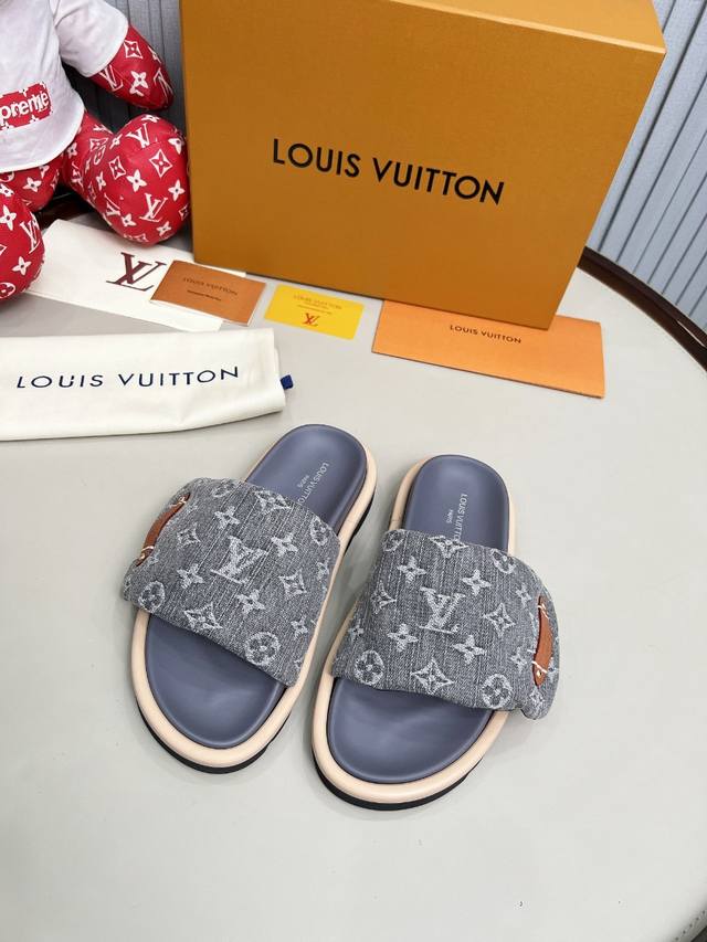 / Lv驴牌L家 2025爆款 浮雕Logo 压花 凉拖鞋 本款 pool pillow Comfort 平底凉拖取材科技织物,以高频压印技术重绎 Monogram
