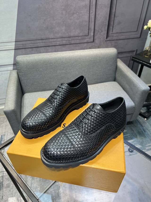 出厂价P Lv 原单牛皮内里 Lv最新真皮商务西装鞋官网同步上市,意大利进口...