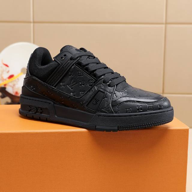 Lv Trainer 运动鞋取材粒面正绒面牛皮革,搭配撞色橡胶外底演绎复古篮球鞋的灵感启发。历经数小时的匠心缝制成就繁复鞋面,橡胶 Lv 字母标注品牌身份。 DDD 粒面正绒面牛皮革 Ddd 鞋带 Ddd 橡胶标识 Ddd 橡胶外底点缀 Monogram Ddd 码数39-45 DDD