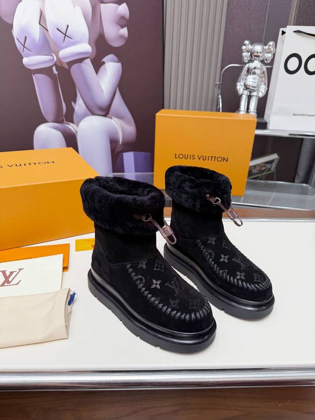 Size:35-42 42订做不退换 Louis Vuitton秋冬最新毛靴 2025Lv走秀款 鞋面:进口高丝光牛皮 内里:毛 里超级暖和 原版开模发泡组合大