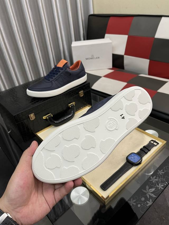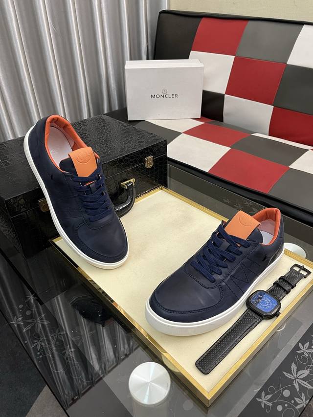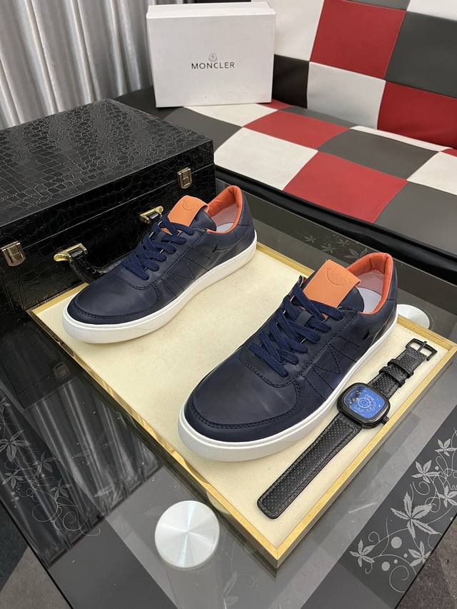出厂价pp: Moncle* 蒙口男士系带休闲运动鞋,具有舒适性能,鞋面采用一体成型进口牛皮制成,兼备创新、功能性与图形细节于一体,诠释潮流时尚。大底采用Tpu+橡胶+高弹橡胶组合成型,具有高弹性高耐磨性,提高舒适性! Ddd Size:38--46 DDD