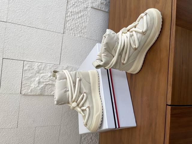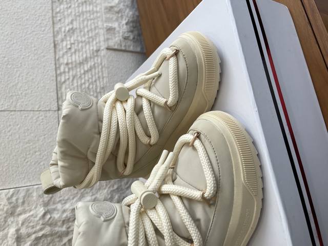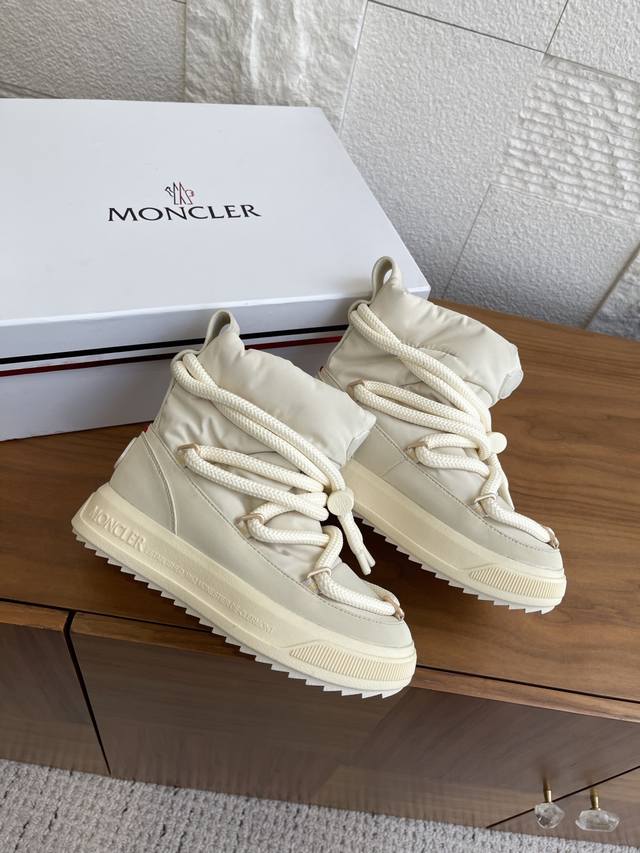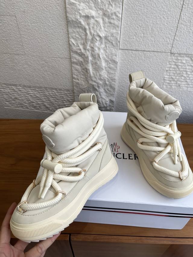 顶级版本: Moncler 2025 秋冬新款 Moncler Altive Mid雪地靴 Moncler Altive Mid 的设计灵感源自典藏款雪地靴廓形,焕新诠释品牌的高山传统。雪地靴轻松融合舒适设计与保护性。搭配方格块绗缝鞋面,Eva中底倍添灵活性,Vibram Megagrip复合底面赋予鞋底抓地力和耐久性。 面料:进口防水羽绒布 压纹牛皮 内里:进口双面绒 大底:原版开模Tpu 橡胶组合 Size:35-41 40 41定做不退换