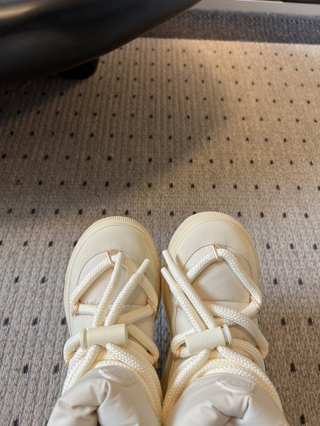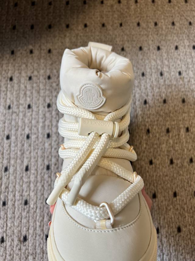 / Moncler 羽绒休闲鞋 设计属于高帮休闲款式,鞋型时尚且富有层次感,鞋帮的褶皱设计和大鞋带元素增添了潮流感,同时结合了品牌的户外风格,兼具时尚与功能性。 采