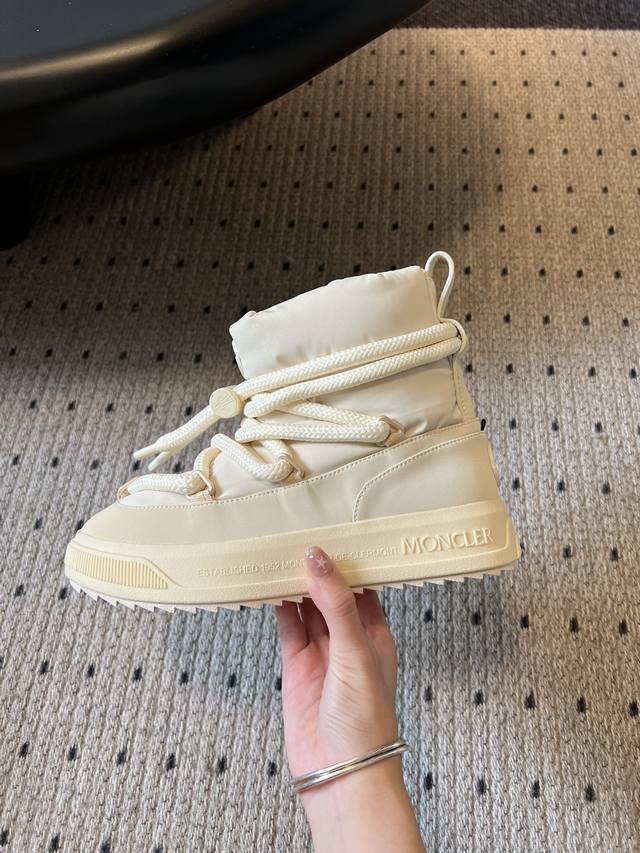 Moncler 羽绒休闲鞋 DDD 设计属于高帮休闲款式,鞋型时尚且富有层次感,鞋帮的褶皱设计和大鞋带元素增添了潮流感,同时结合了品牌的户外风格,兼具时尚与功能性。 DDD 采用了类似羽绒填充的材质和皮革等拼接制作,质感独特,工艺精细,不同材质的拼接让鞋子更具设计感,也提升了保暖性和耐用性。 DDD 鞋面:防水涂层滑雪布 DDD 内里:羊绒布里 DDD 大底:Tpu大底 DDD Size:35-41码 DDD