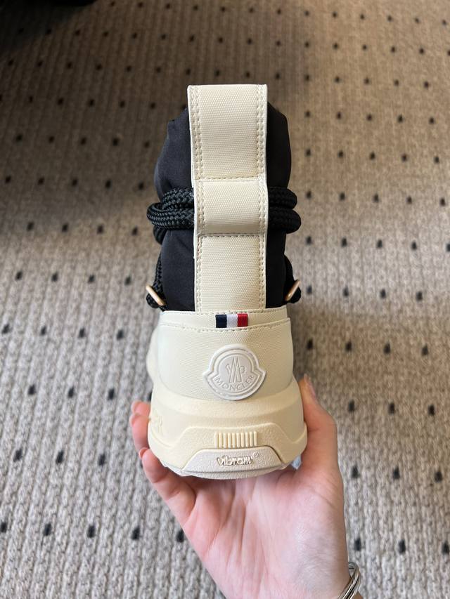 / Moncler 羽绒休闲鞋 设计属于高帮休闲款式,鞋型时尚且富有层次感,鞋帮的褶皱设计和大鞋带元素增添了潮流感,同时结合了品牌的户外风格,兼具时尚与功能性。 采