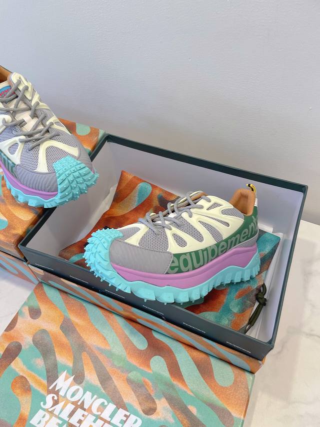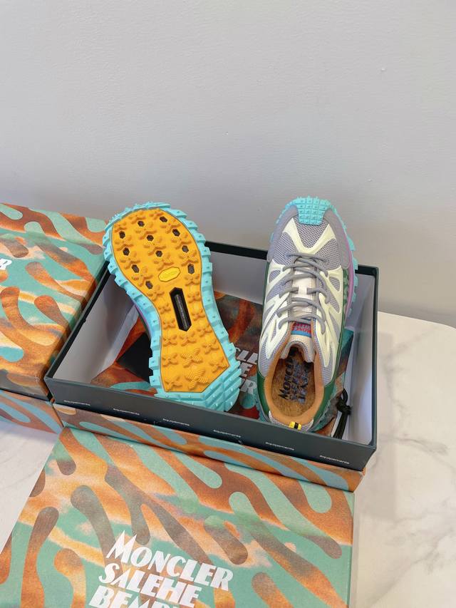顶级版本Salehe Bembury X Moncler盟可睐 Trailgrip 圆头系带 生活休闲鞋 原楦数据开发 面料采用防水耐磨纤维革组合半透明透气网纱