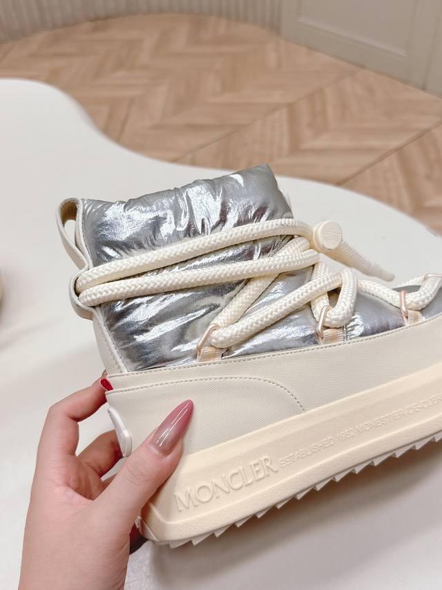 / Moncler2025新款雪地靴 奢华与功能的完美融合 行走的羽绒服:防水尼龙+加绒内里,-10℃也能暴走雪地 工业风美学:粗绳鞋带+撞色,机能感拉满 低调奢华